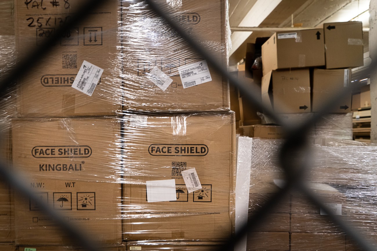 Si l’entrepôt déborde de boîtes, c’est parce qu’il doit compter assez de matériel de protection pour subvenir aux besoin des deux prochains mois.