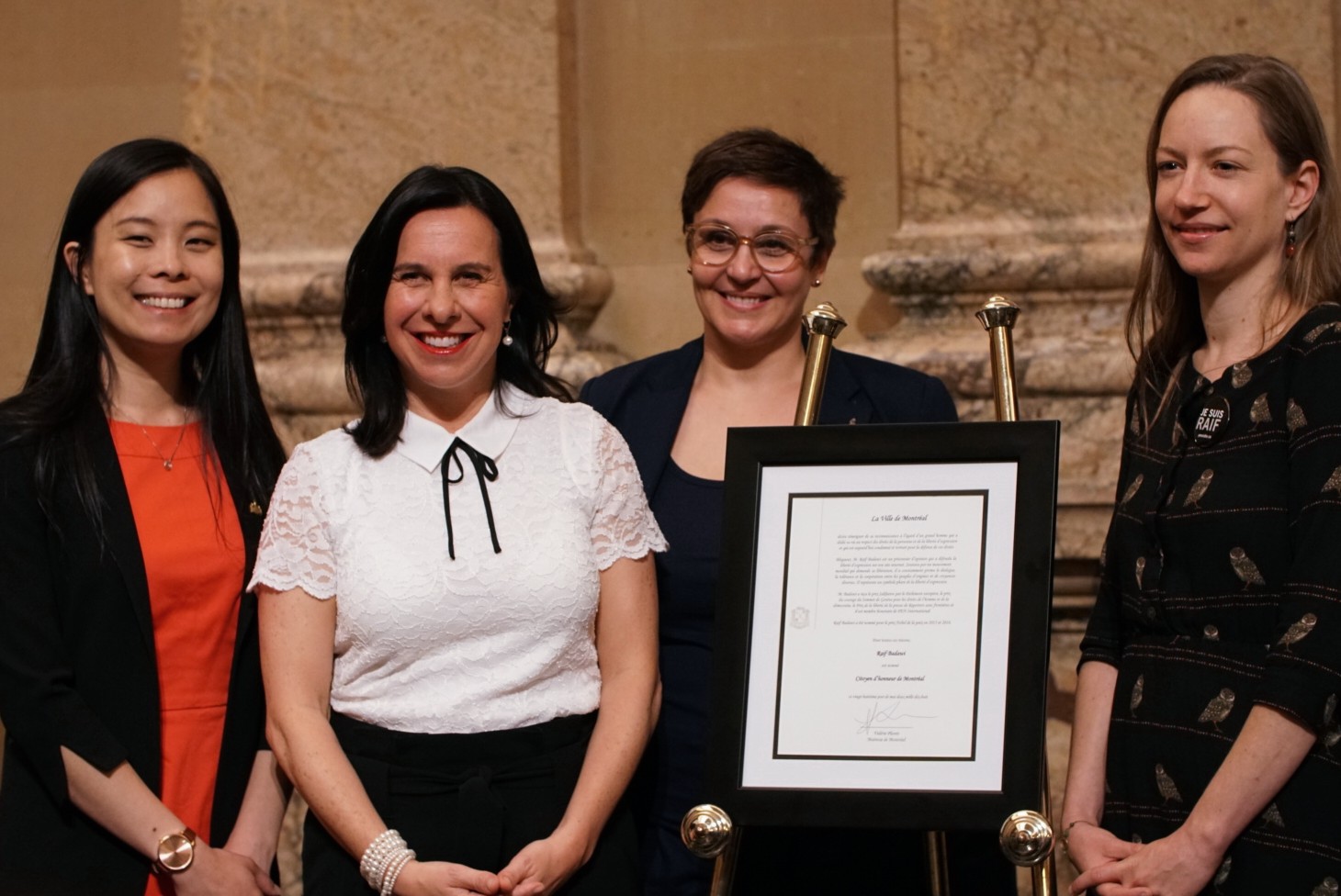 Après avoir obtenu ce statut des villes de Sherbrooke et de Hampstead, le blogueur Raïf Badawi, emprisonné en Arabie Saoudite depuis 2012, a été désigné citoyen d’honneur de la Ville de Montréal, lundi.