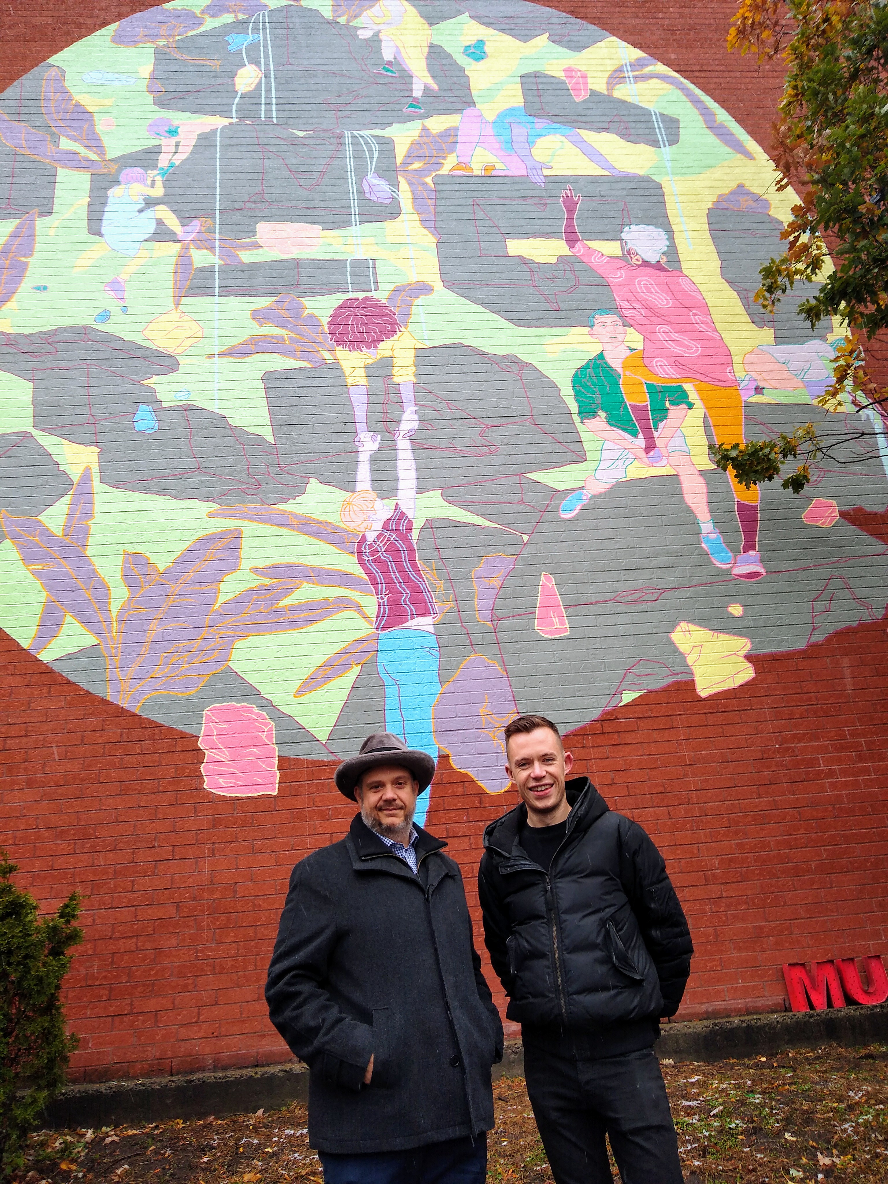 «Je désirais montrer l’importance de travailler ensemble et illustrer l’entraide entre voisins», ajoute l’illustrateur de métier qui a conçu sa première murale permanente.