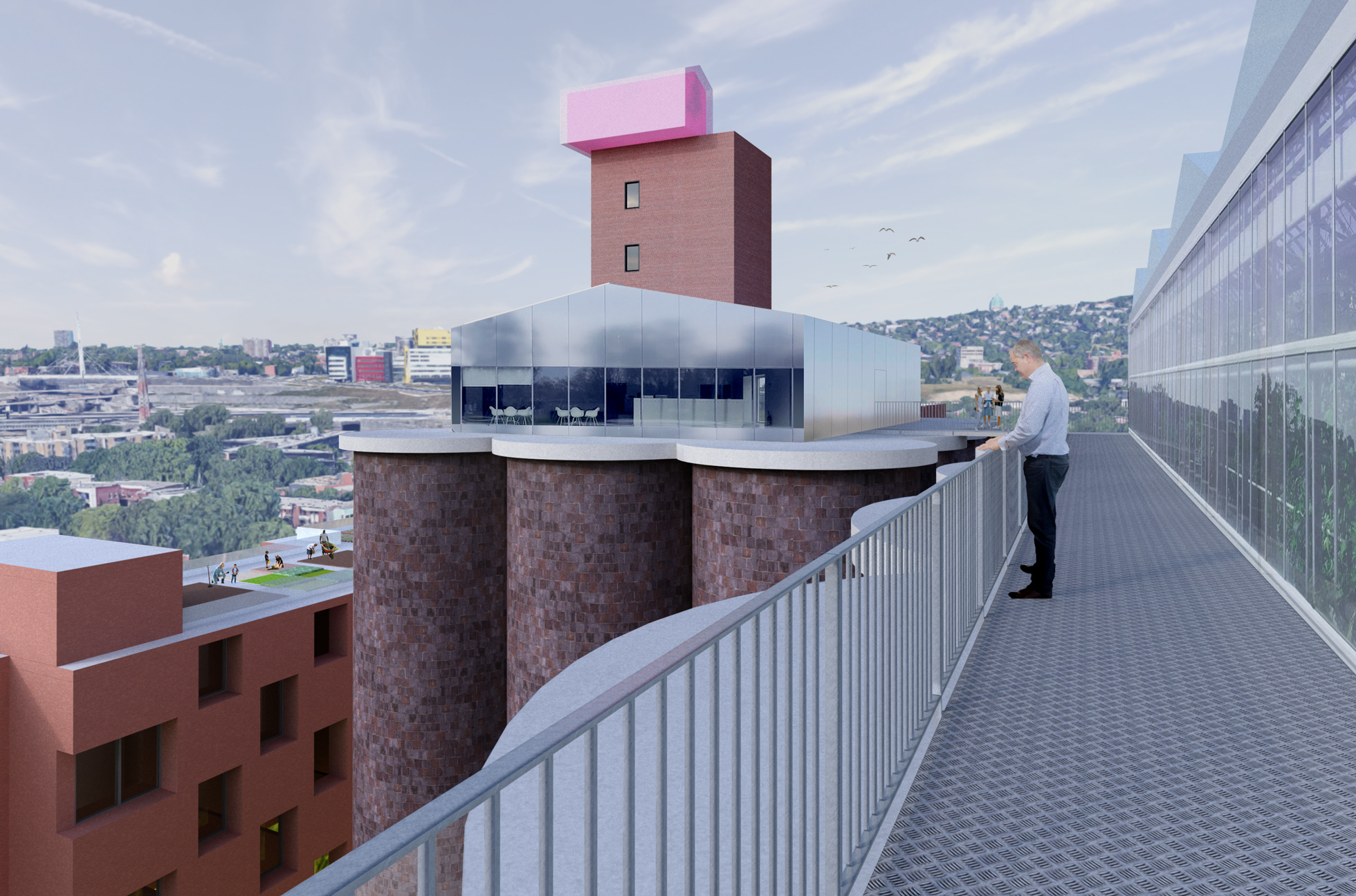 Alors que plusieurs résidents doivent marcher plus de 30 minutes pour se rendre au marché Atwater, le but est de rendre le projet immobilier autosuffisant. Des bassins pour l’aquaponie, la culture de végétaux combinée à l’élevage de poissons, pourraient être installés dans un ou plusieurs silos. Des serres pourraient quant à elles permettre la culture hydroponique sur le toit.