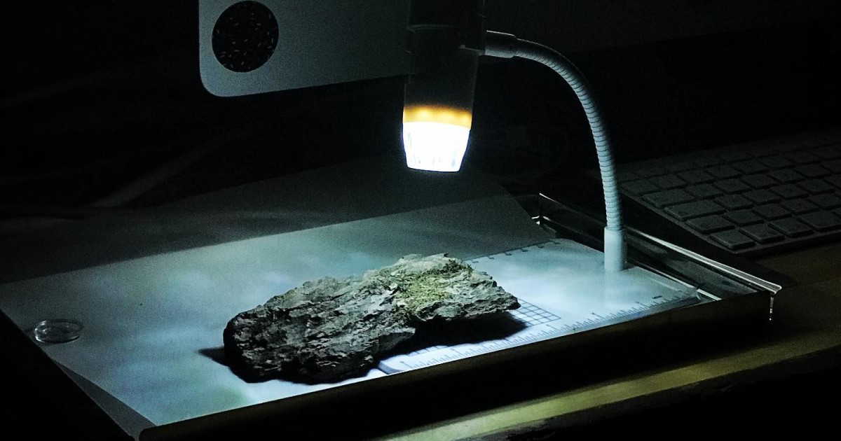 Doté d’un microscope électronique, il a capté des gros plans d’écorce d’arbres au ralenti. Il s’est également déplacé sur le lieu d’exposition pour capter des images avec son téléphone cellulaire.