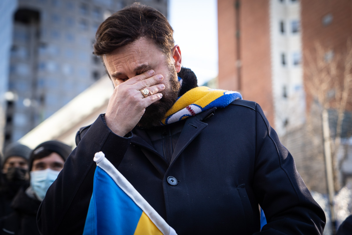 On y entend un missile frapper l’immeuble d’à côté, un enfant hurler, une famille se réfugiant au sous-sol. Solennels, les visages sont marqués, eux aussi, par l’ampleur de l’atrocité. Des yeux pleurent, en silence.