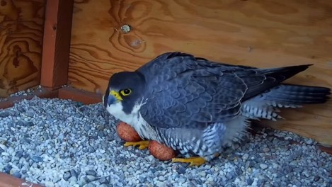 Un faucon pèlerin a élu domicile dans la tour de l’Université de Montréal. L’oiseau, que l’on surnomme Ève, a pondu un deuxième œuf mardi après en avoir pondu un premier deux jours auparavant. Ève devrait pondre deux autres œufs d’ici dimanche. Il faudra attendre environ 35 jours avant de les voir éclore.