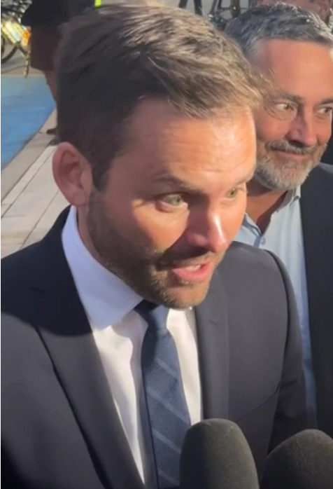 Paul St-Pierre-Plamondon du parti québécois est l'avant-dernier chef à arriver sur place, avec le député Pascal Bérubé à ses côtés. L'ex-avocat prend le temps de saluer ses partisans, qui sont nombreux sur place. «On a eu un succès, de l'intérêt lors du premier débat», se réjouit-il.