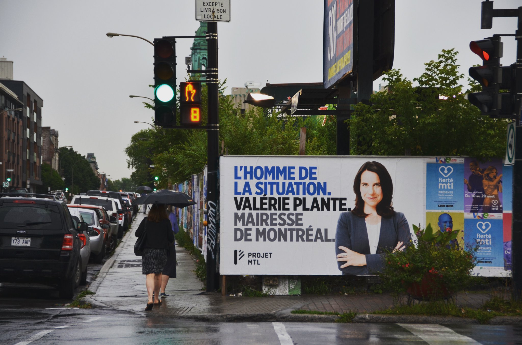 Sur ces affiches, on peut y lire le nom de la candidate de l’opposition officielle, Valérie Plante, mais également son slogan: «L’homme de la situation».