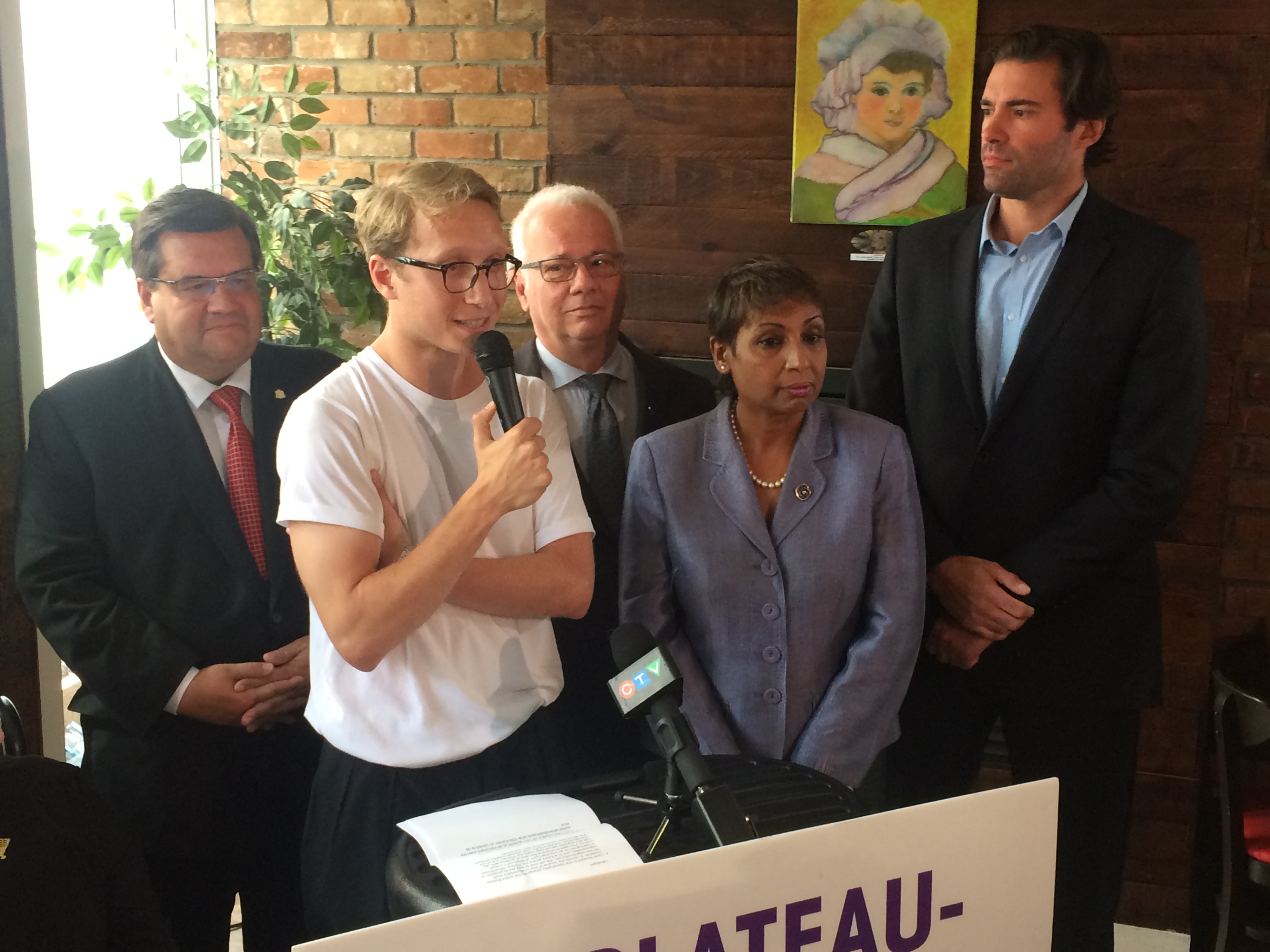 Équipe Coderre a également présenté mercredi la quasi totalité de ses candidats dans le Plateau–Mont-Royal. L’ex-présidente du Regroupement des activistes pour l’inclusion au Québec (RAPLIQ), Linda Gauthier, Iris Almeida-Côté et Marc-Antoine Desjardins, organisateur de la Cyclovia Camillien-Houde, seront candidats à un poste de conseiller de ville. Jean-Pierre Szaraz et Daniel Loureiro tenteront de se faire élire comme conseiller d’arrondissement. Un dernier candidat sera annoncé jeudi, a précisé le parti Équipe Coderre.