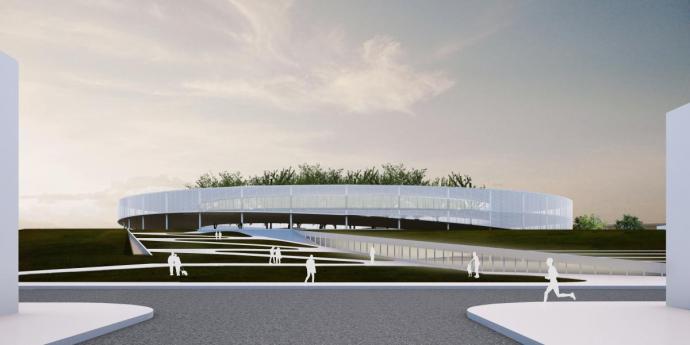 Un bâtiment administratif en forme d’anneau coiffera le centre de transport. Une cour intérieure sera aménagée à l’intérieur pour les employés. Un espace «végétalisé» sera aussi accessible au public.