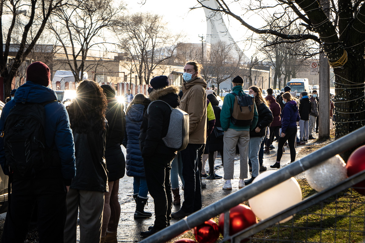 Vers 11h, le site du Stade olympique avait déjà atteint sa capacité pour la journée. Les usagers étaient redirigés au 5454, rue Chauveau. Sur place, vers 11h30, la file d’attente débordait à l’extérieur et s’étirait du boulevard de l’Assomption à la rue Dickson.