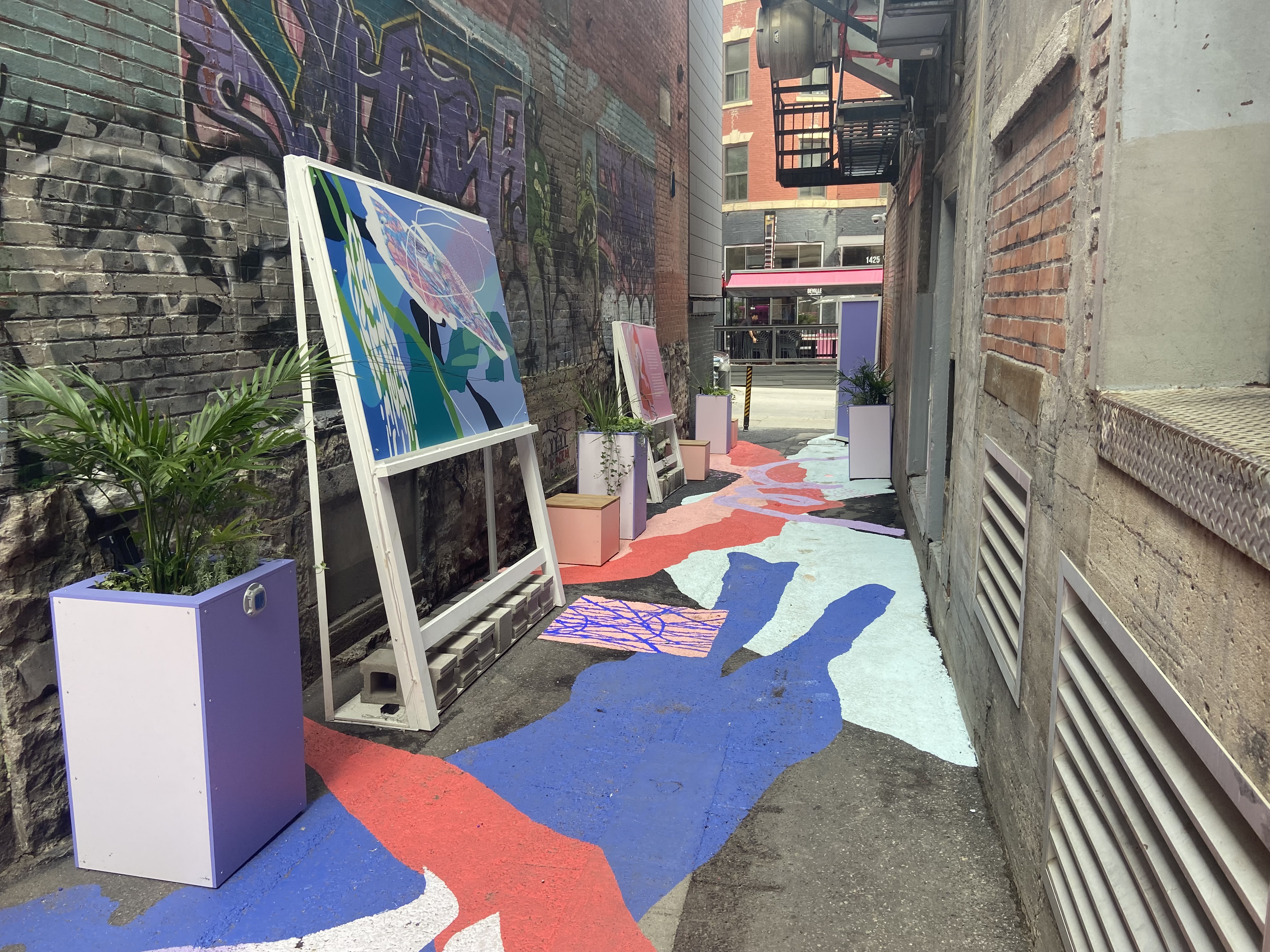 Plus de 400 ruelles sont aménagées à Montréal, avec de la végétation, du mobilier, ou des œuvres d’art, notamment les fameuses «ruelles vertes». Mais aucune d’entre elles n’était située au centre-ville, jusqu’à jeudi. Deux ruelles colorées ont été dévoilées dans ce secteur par Tourisme Montréal.