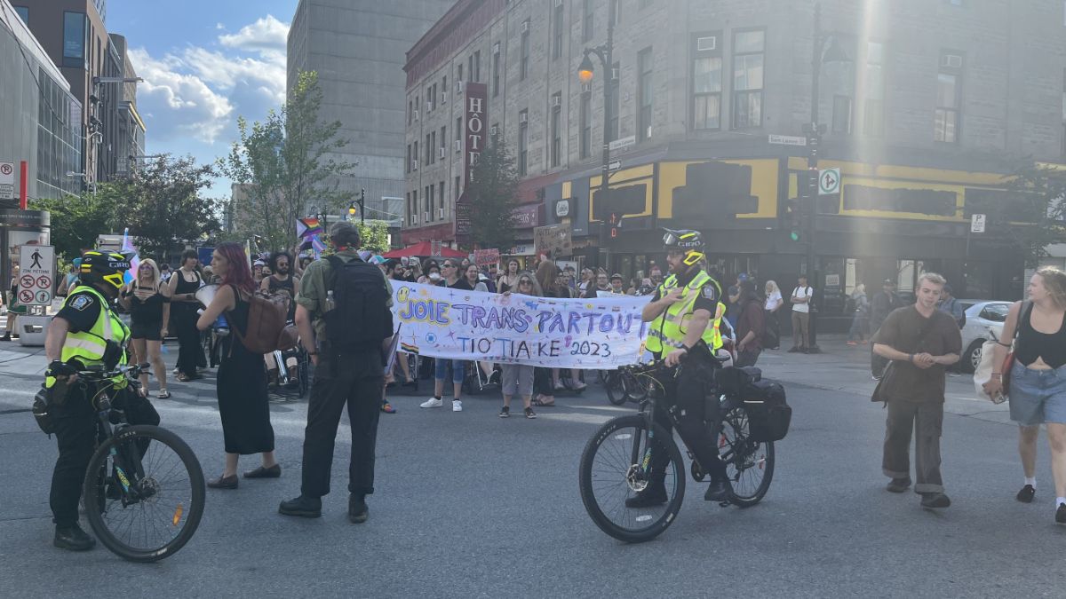 La Marche trans, qui a lieu dans le cadre du Festival Fierté Montréal, vise à faire entendre les revendications des personnes issues de la diversité sexuelle et de genre, qui affirment faire face à une hausse de la haine à l’égard des communautés LGBTQ2+.