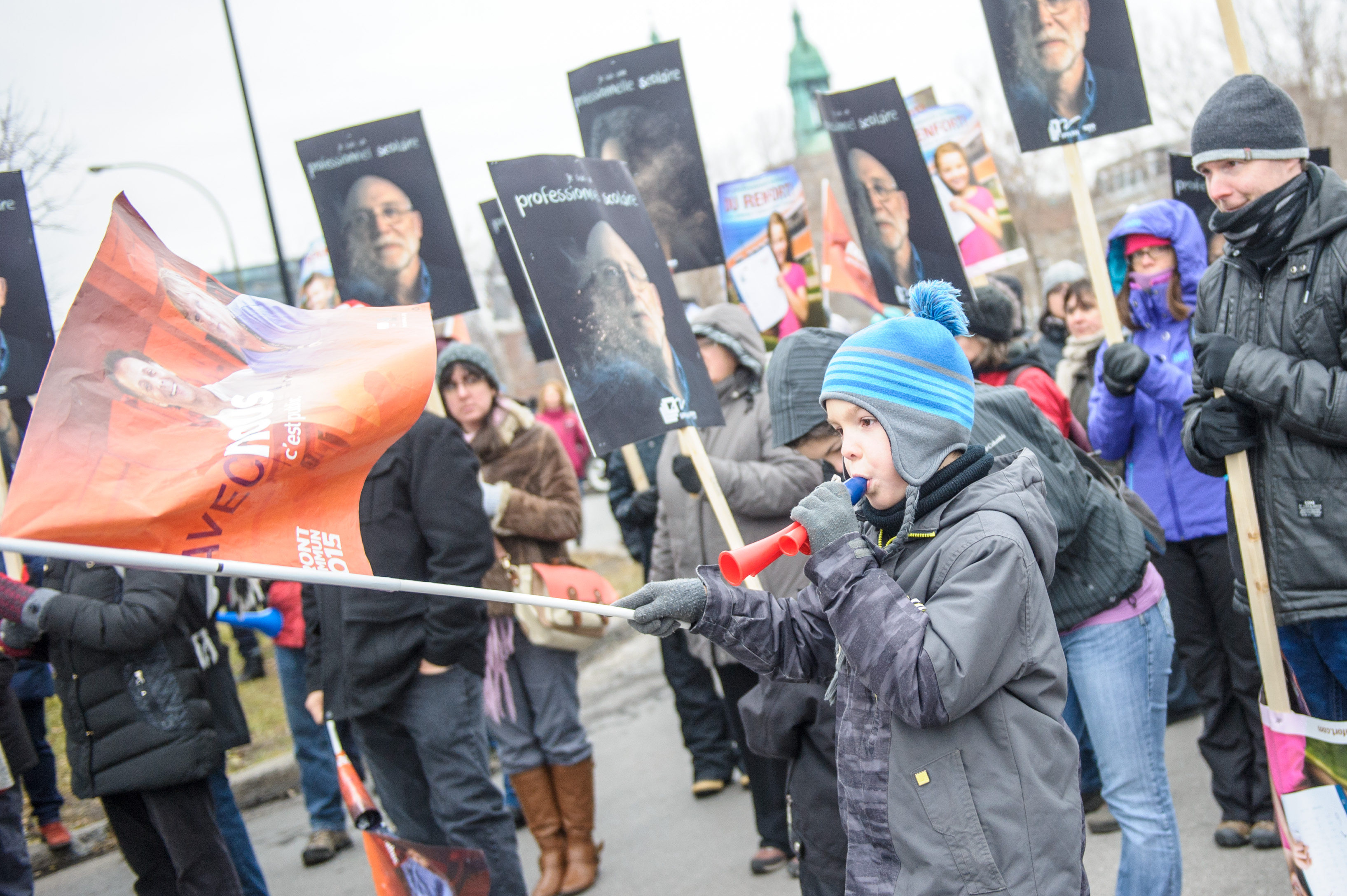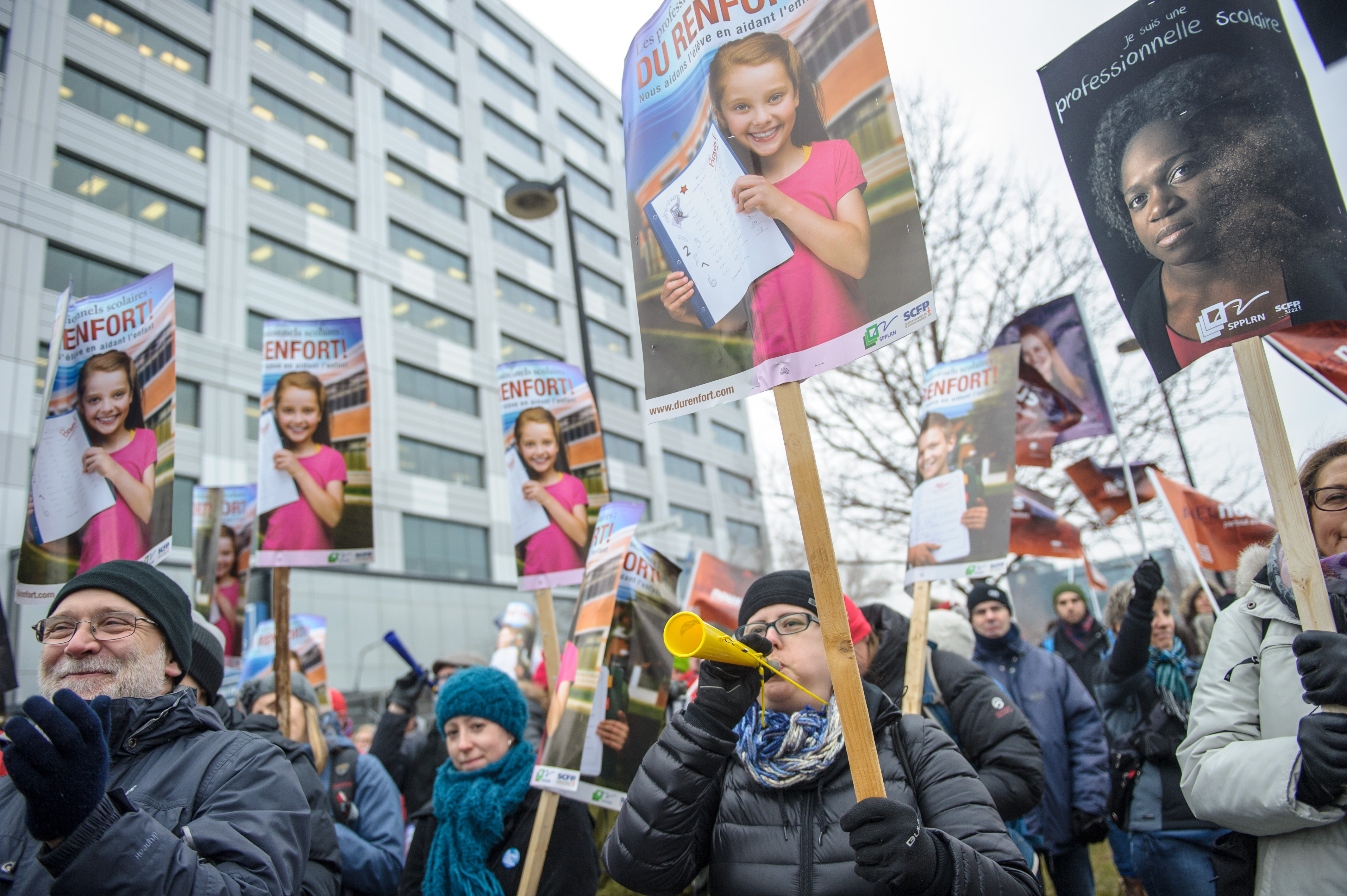 Le syndicat regroupant notamment les orthophonistes, les orthopédagogues, les psychoéducateurs et les psychologues ont manifesté pour mettre en garde les parents d’élèves contre la diminution de ces services, conséquences des compressions budgétaires. Les professionnels rassemblés mercredi ont projeté sur écran 10 illustrations mettant en valeur les services qu’ils fournissent aux élèves.