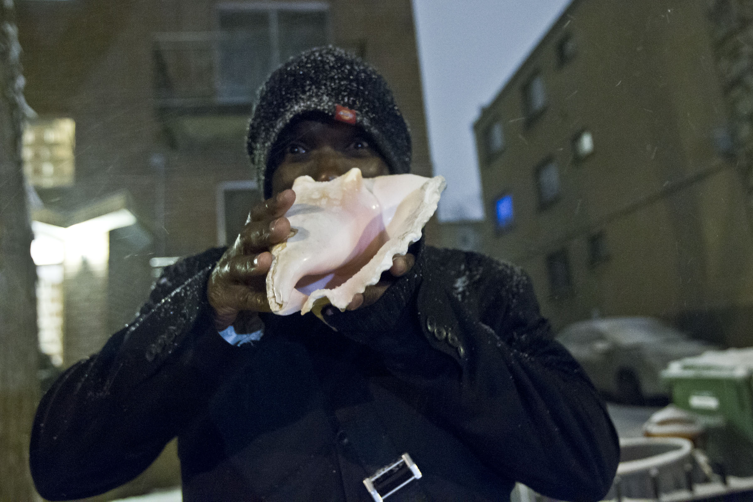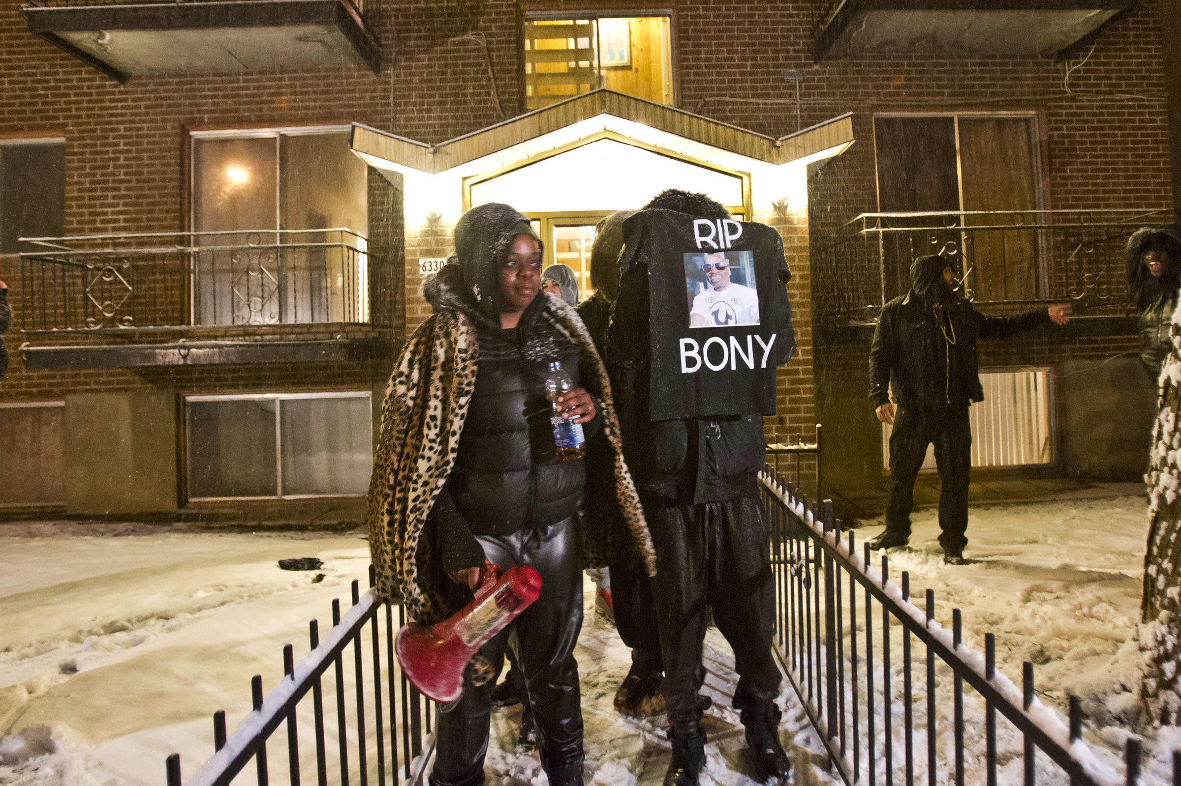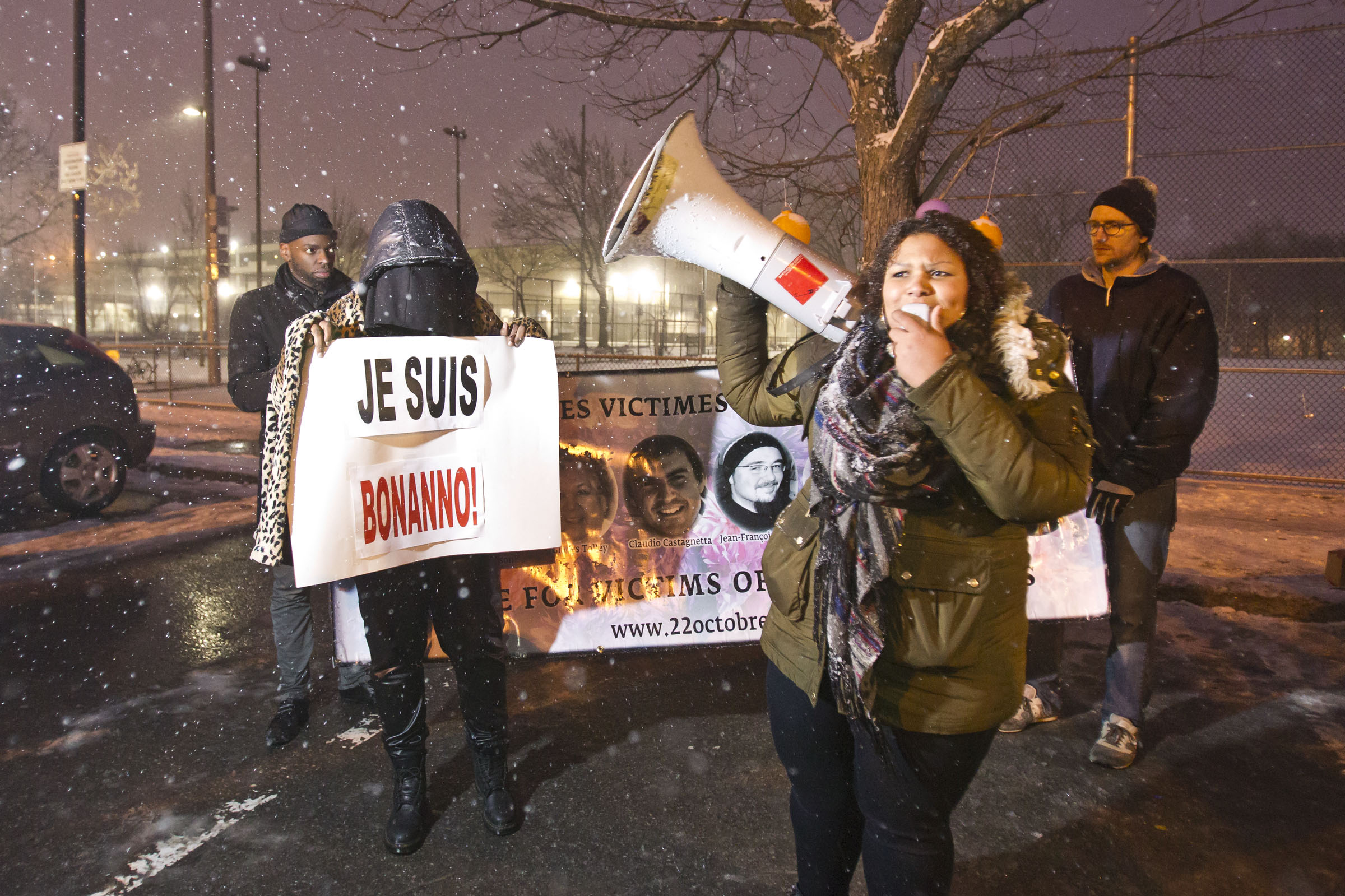 Alors que Lilian Madrid Villanueva, la mère de Fredy, abattu par un policier le 9 août 2008, était en tête du cortège, le portrait de son fils entre les mains, de nombreux résidents de Montréal-Nord et représentants d’organismes tenaient à protester contre les circonstances de cette mort, malgré des conditions climatiques difficiles et les chutes de neige.