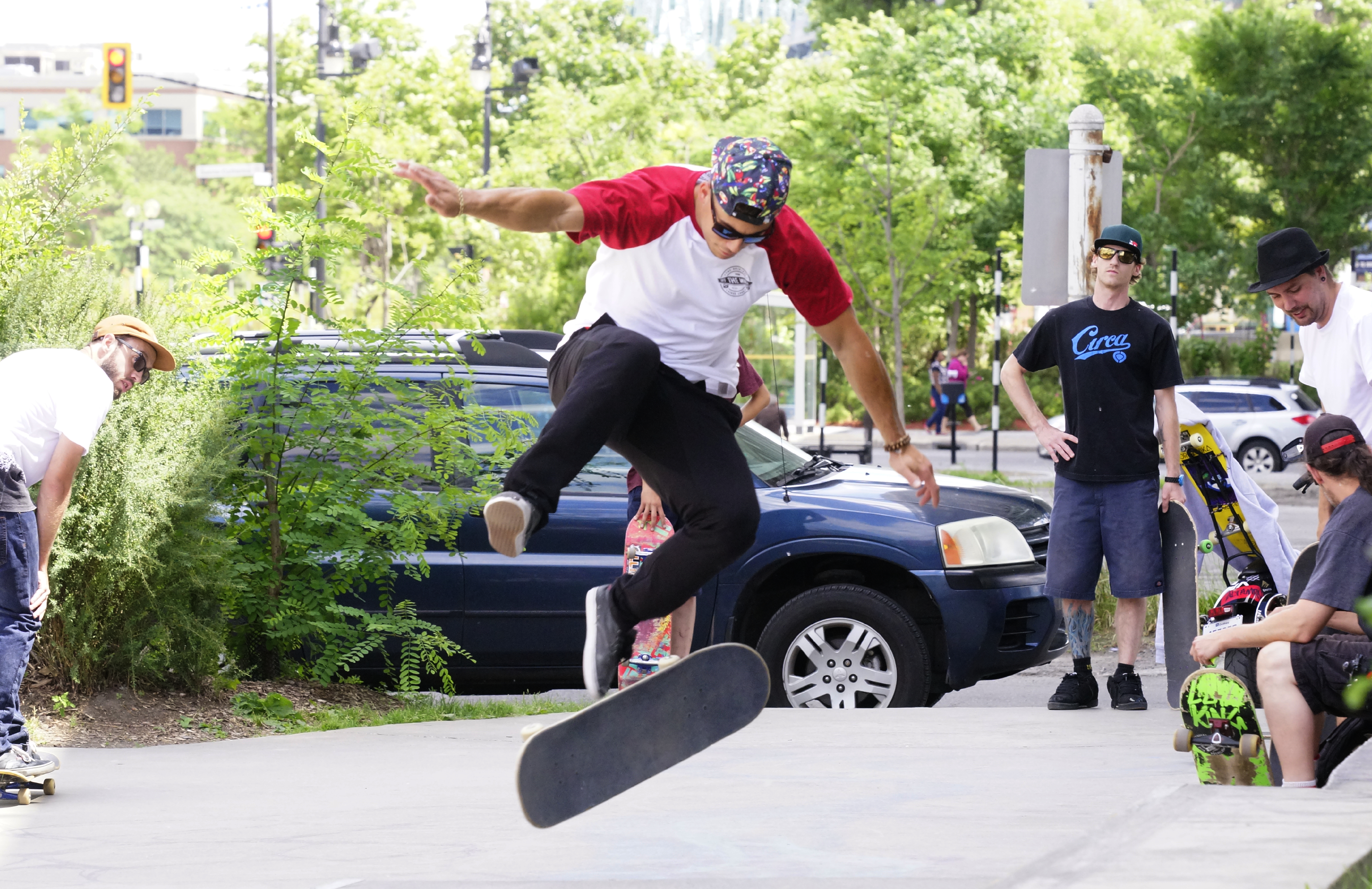 Des planchistes de tous âges se sont rassemblés à la Skate Plaza Montréal, situé au coin du boulevard De Maisonneuve et de l’avenue De Lorimier, puis ont roulé à bord de leurs bolides jusqu’à la place de la Paix, dans le Quartier des spectacles, où la pratique du skate a été autorisée il y a environ un an.