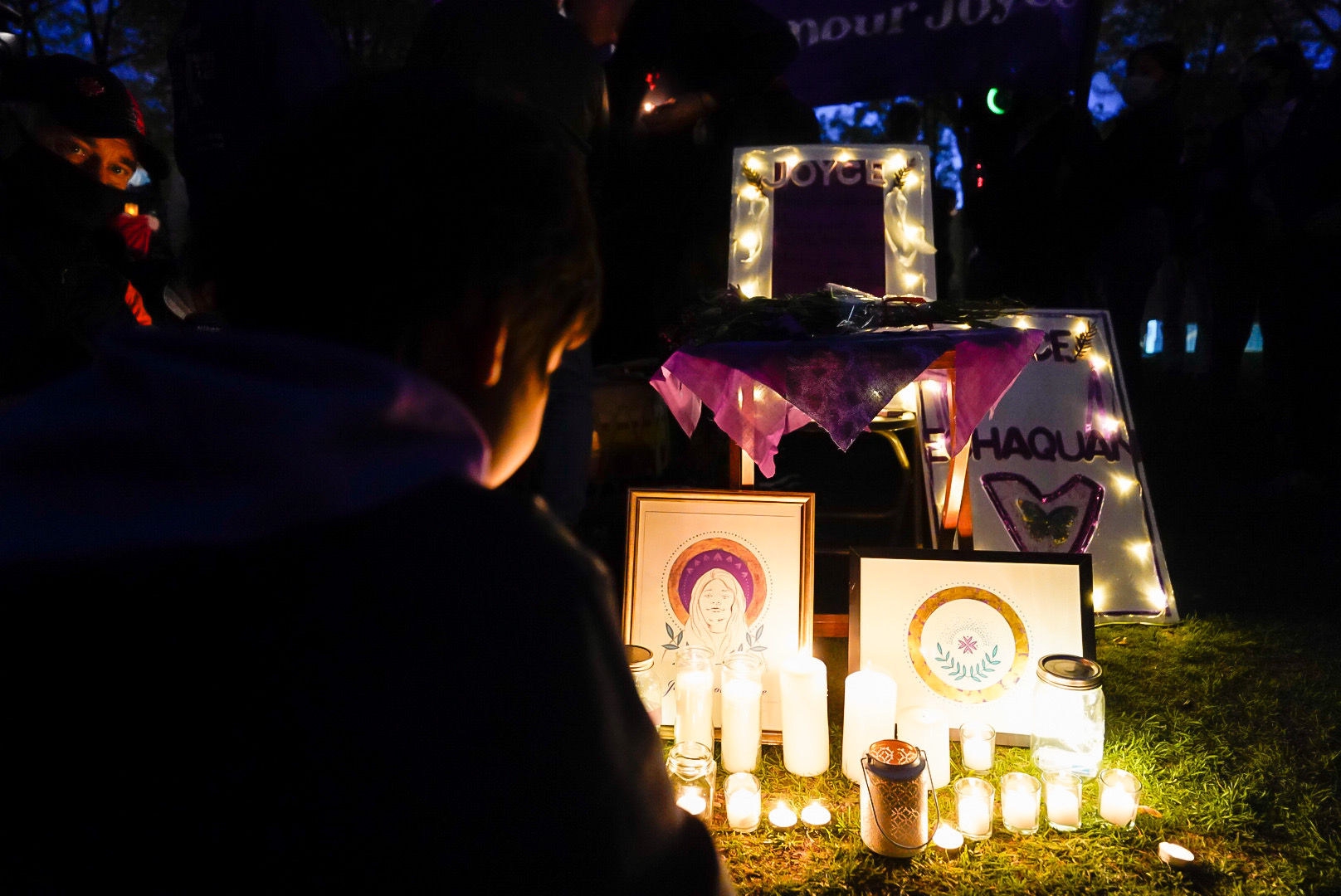 Une veillée en mémoire de Joyce Echaquan, la mère de famille atikamekw décédée sous une pluie d’insultes racistes à l’hôpital de Joliette il y a un an, a eu lieu à la place Émilie-Gamelin, mardi soir, à Montréal.
