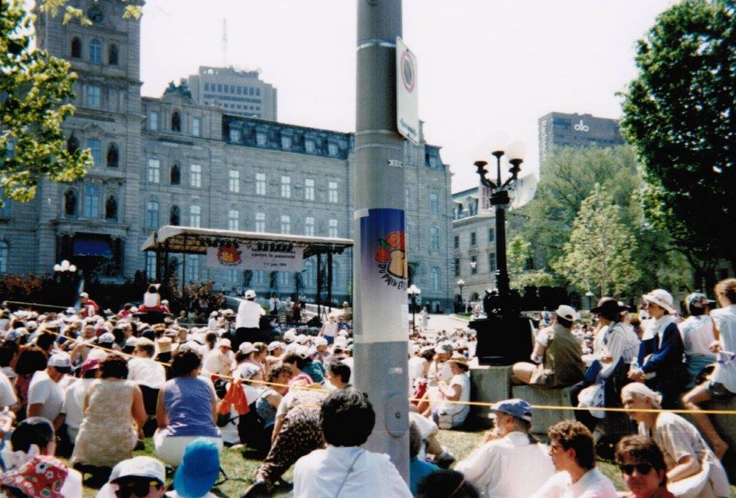 Le 26 mai 1995, la Marche du pain et des roses a été lancée. Sac sur le dos et espadrilles dans les pieds, les femmes ont délaissé leur famille et se sont mis en marche vers la Capitale pour aller porter leurs revendications pour freiner la pauvreté. En chemin, elles échangeaient sur leur vécu, sinon elles chantaient, notamment l’hymne à la marche qui a été popularisée par Marie-Claire Séguin. Dans les villages, des citoyens les encourageaient et les cloches des églises résonnaient.