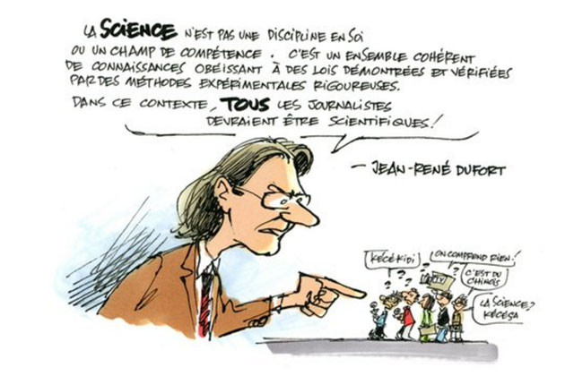 À l’aide du mot clic #100LaScience (sans la science!), deux personnalités prendront la parole chaque jour, pendant 50 jours, pour partager leur vision du journalisme scientifique.