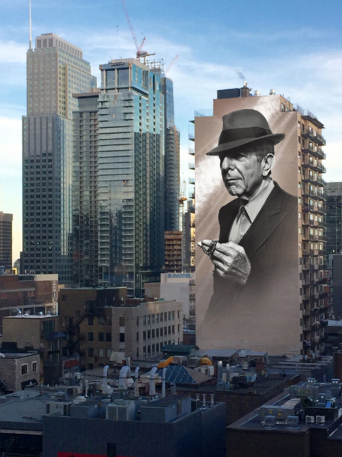 Des échanges sont actuellement menés avec la famille de Leonard Cohen afin de trouver l’image finale qui sera affichée sur cette murale. Né à Westmount, le chanteur, compositeur et interprète est décédé le 7 novembre 2016 à 82 ans. Il résidait dans l’arrondissement du Plateau-Mont-Royal.