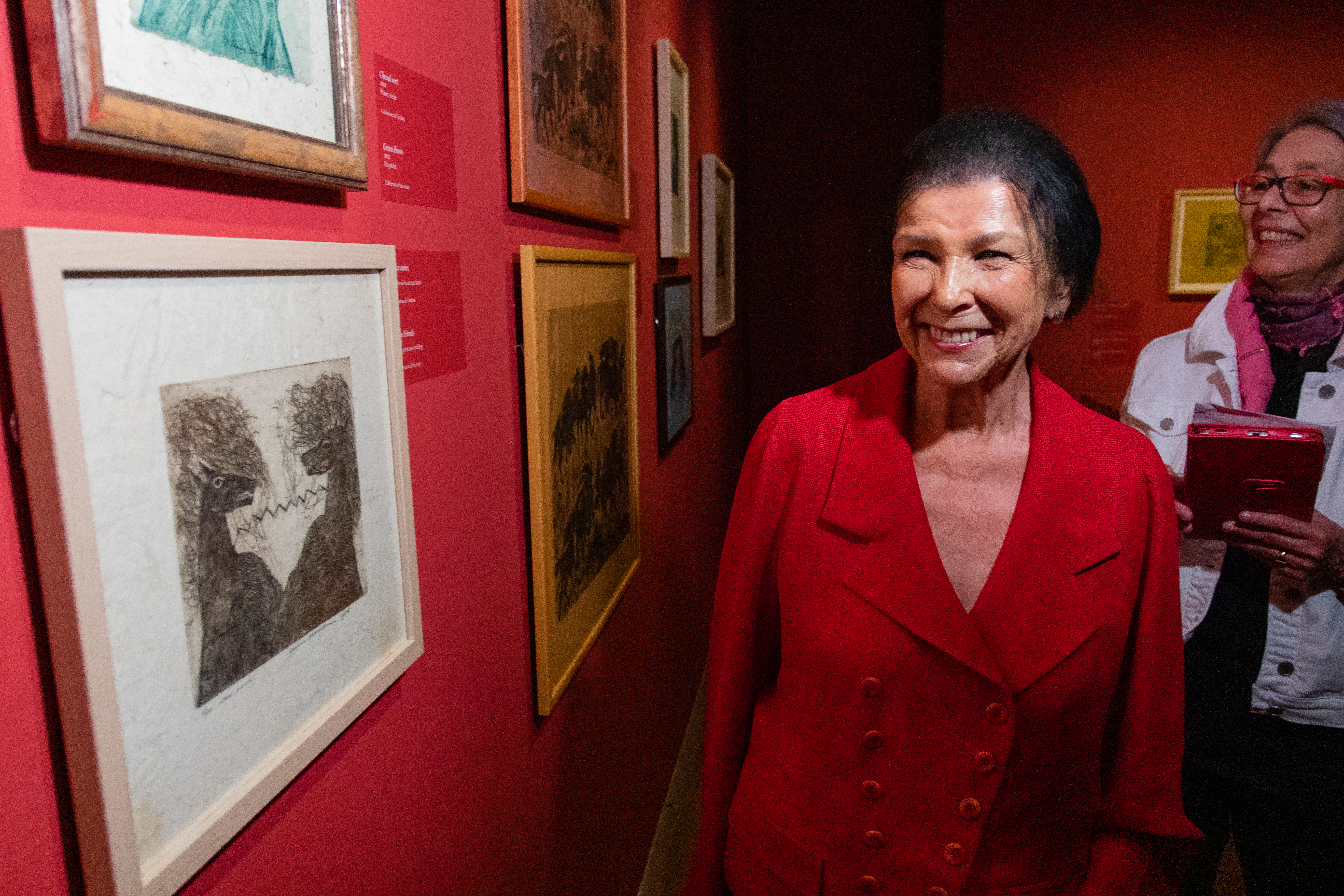 Dans un autre songe, un cheval vert lui courait après sans relâche, raconte-t-elle en riant de bon cœur. Un monotype de ce cheval et plusieurs gravures montrant ce puissant animal sont exposés sur les murs rouges des deux salles du musée.