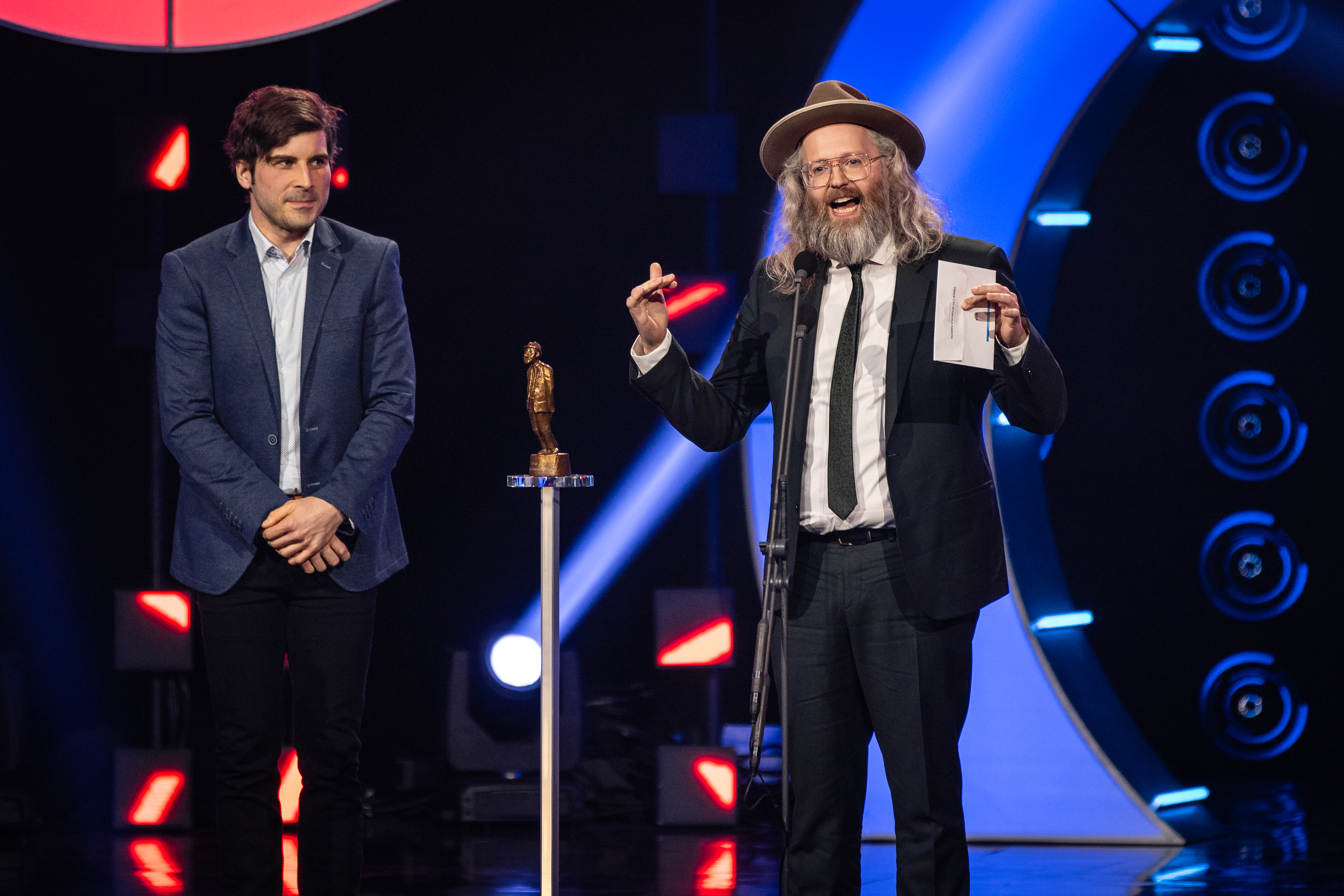 «C’est pas un Olivier Guimond, c’est un Olivier Primeau; il est bronzé.» Sam Breton, Découverte de l’année, au sujet de son trophée
