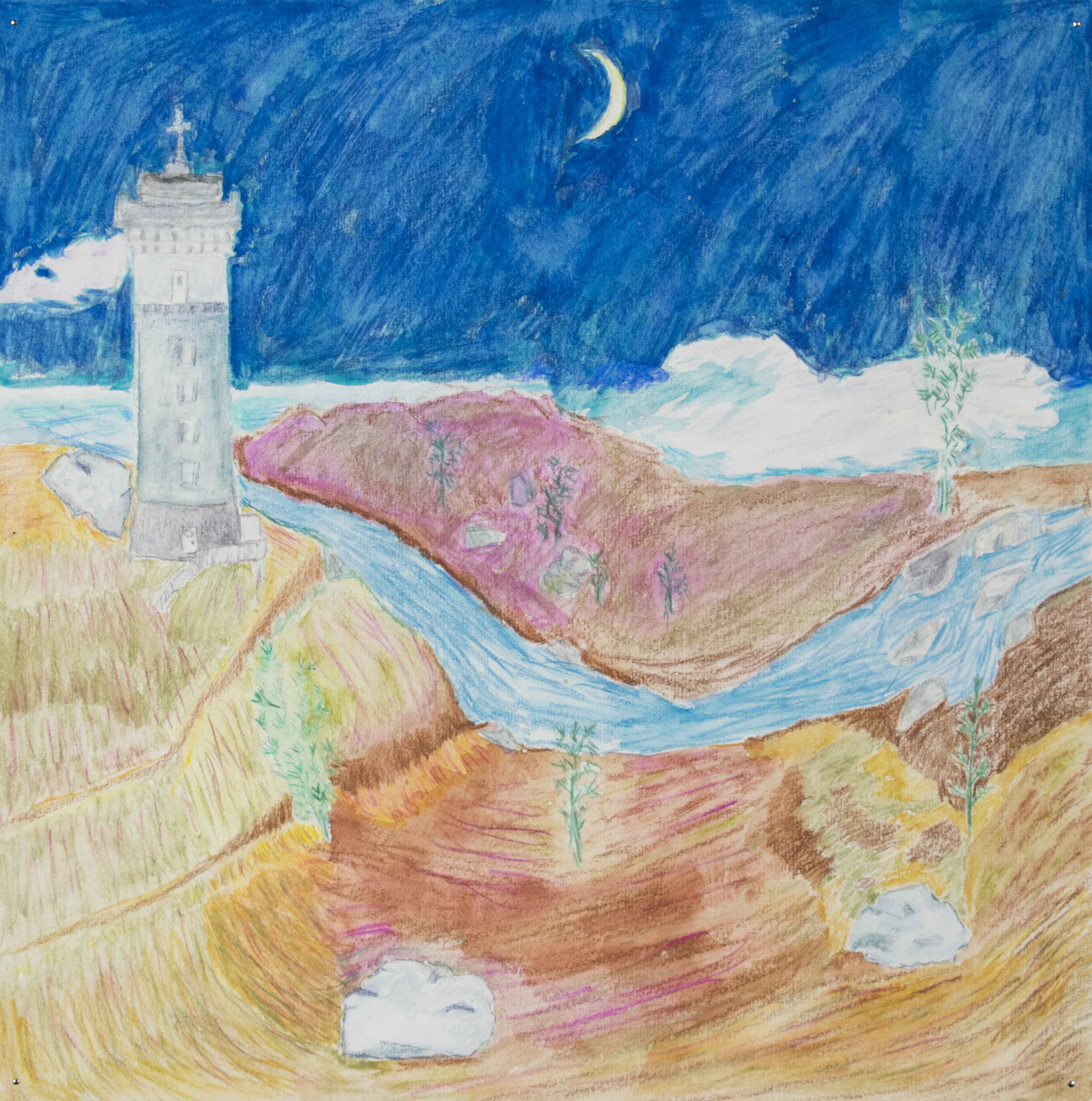 «C’est la première fois que je crée quelque chose sans partir d’un modèle, explique-t-elle. Ce qui m’inspirait au départ, c’était le phare. Puis, j’ai essayé de remplir le reste. Je n’ai pas de notion en profondeur et en perspective, donc j’ai fait ce que j’ai pu.»