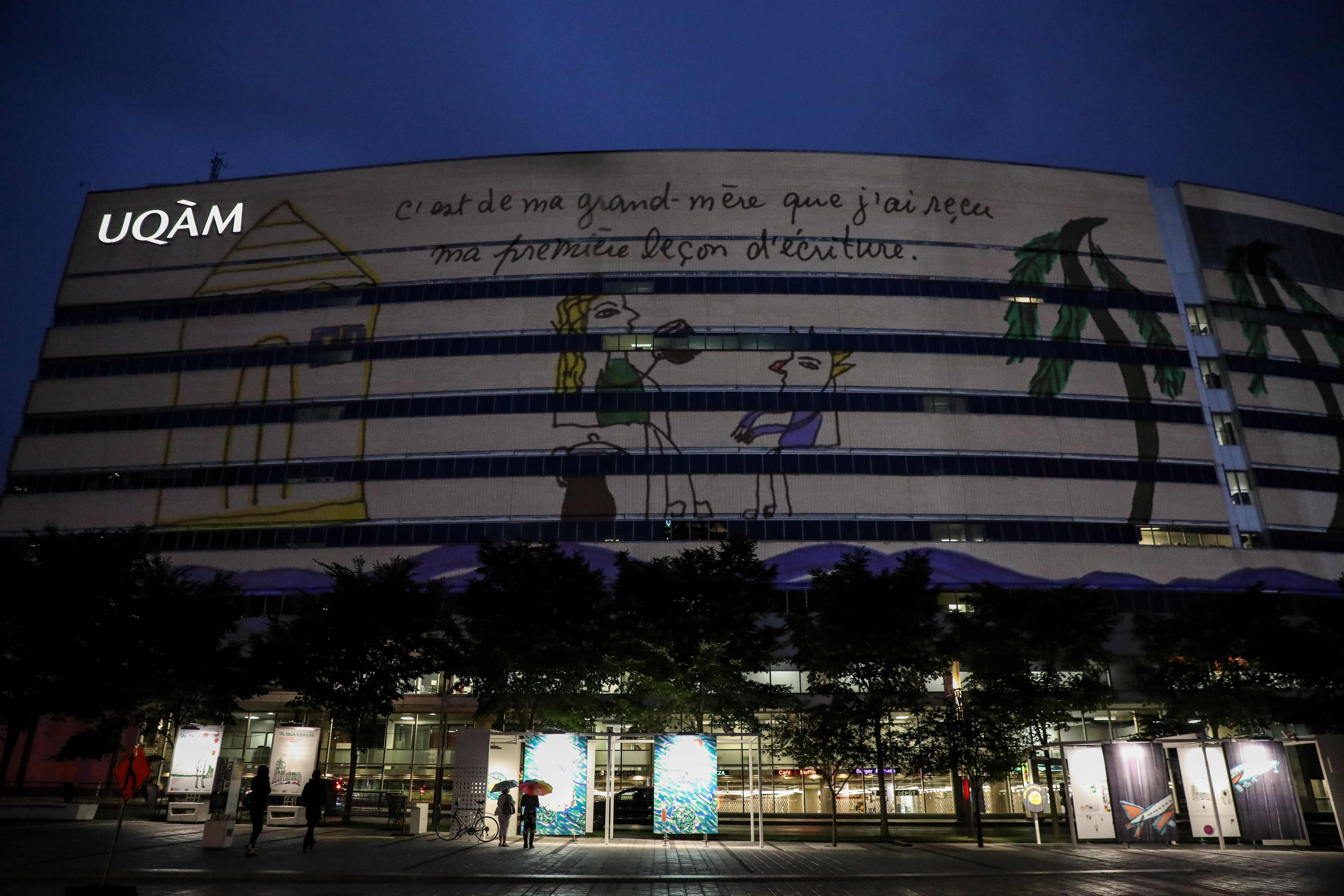 Voilà déjà 35 ans que Dany Laferrière nous partage avec sa plume colorée et parfumée des facettes de sa vie, de Petit-Goâve à Paris en passant bien sûr par Montréal. Pour souligner cet anniversaire professionnel, le commissaire Félix Dagenais a sélectionné près d’une cinquantaine de pages tirées de ses trois romans dessinés. Exposées sur des panneaux géants, elles relatent la vie et l’œuvre – l’un ne va pas sans l’autre! – de l’académicien. Du mercredi au dimanche en soirée, s’ajoute au parcours la projection architecturale animée L’exil vaut le voyage sur la façade du pavillon Président-Kennedy de l’UQAM.