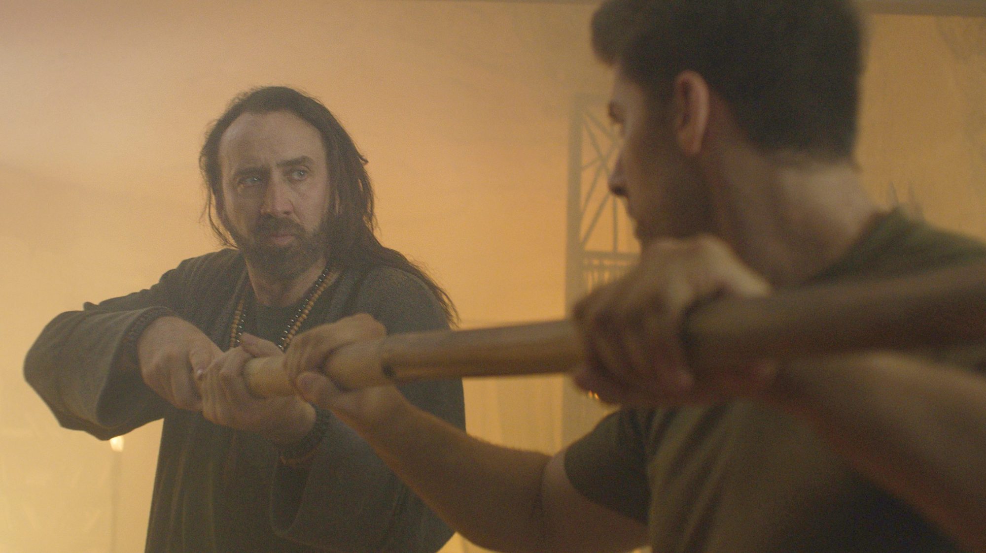 Nick Cage est tellement gentil! On a commencé à s’entraîner très rapidement, notamment pour le combat qu’on a ensemble. Il portait des jeans, un t-shirt rock’n’roll avec des bottes de cowboys. On a pratiqué comme ça pendant environ trois heures. À un moment donné, il m’a demandé si on pouvait faire cette scène qui comprend du dialogue et de l’action. J’étais tellement content d’avoir répété et préparé la scène en avance! Je la travaillais avec mon coach depuis deux, trois semaines, et finalement Nick et moi étions tous les deux ready-to-go. Ce qui est le fun avec lui, c’est que malgré une carrière aussi incroyable que la sienne, il est encore super passionné. Il arrive sur le plateau et il a hâte de s’attaquer à son personnage et au jeu.