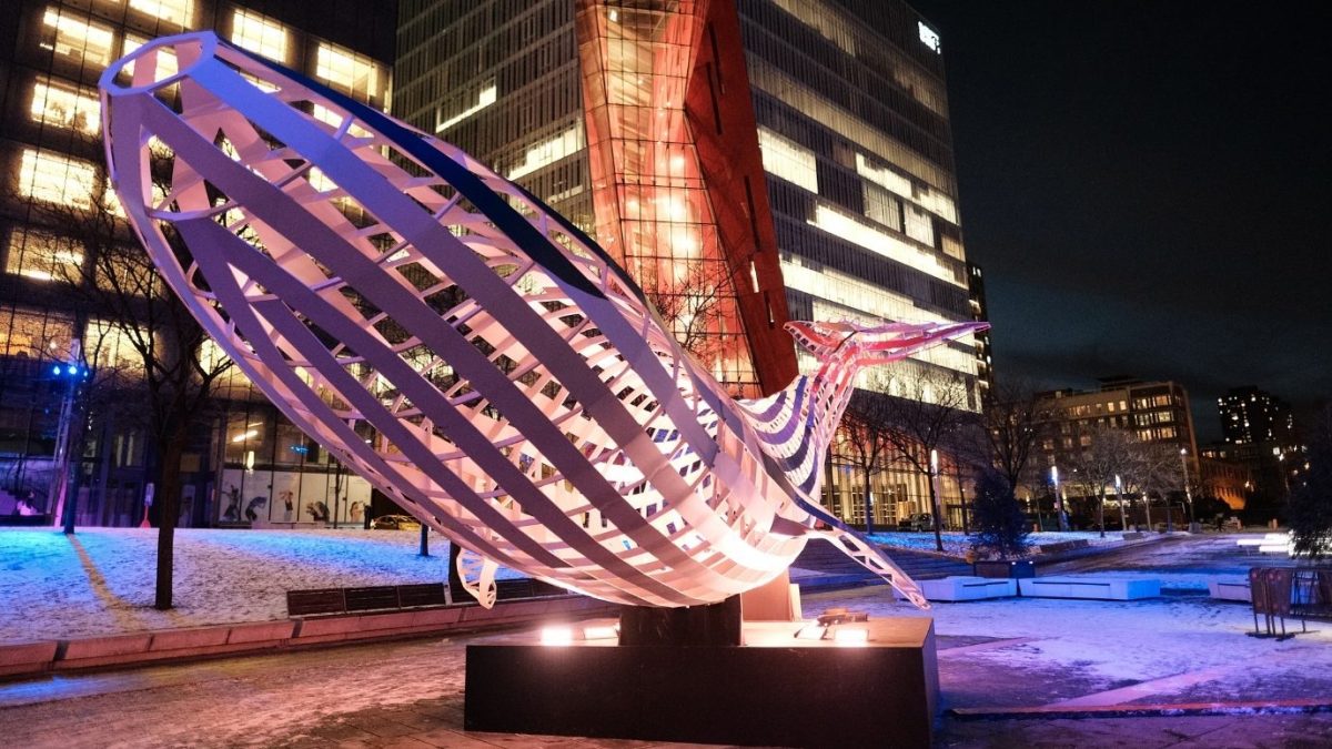 Qui dit retour des couchers de soleil à 16h dit retour de Luminothérapie dans le Quartier des spectacles. Pour la douzième édition de cet événement hivernal, une baleine géante a été installée sur la place des Festivals afin de sensibiliser le public au respect de la nature.