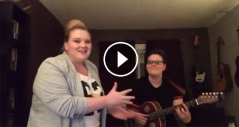 La comédienne Debbie Lynch-White offre souvent des reprises de chansons sur Facebook et en voici une qui rend ses fans très, très heureux, puisqu’elle y présente sa conjointe, Marina.