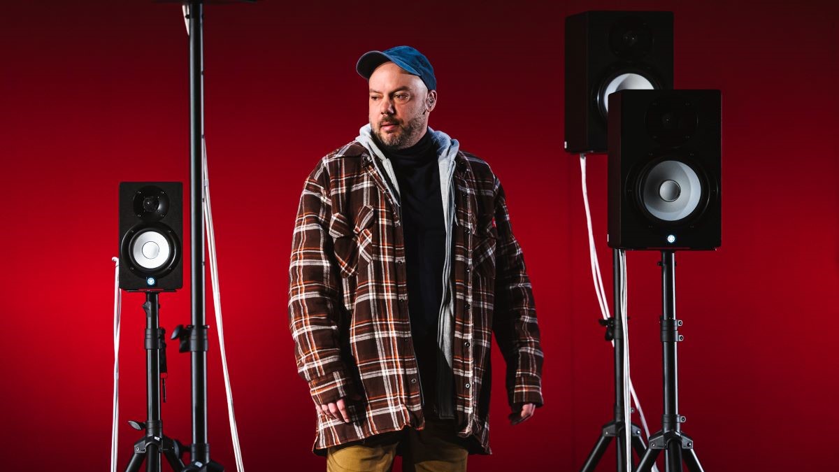 Sur scène, l’artiste est pratiquement seul, entouré d’une flopée de haut-parleurs desquels sortent entre autres les témoignages de différent.e.s intervenant.e.s qui expliquent les réalités de l’industrie laitière d’ici.