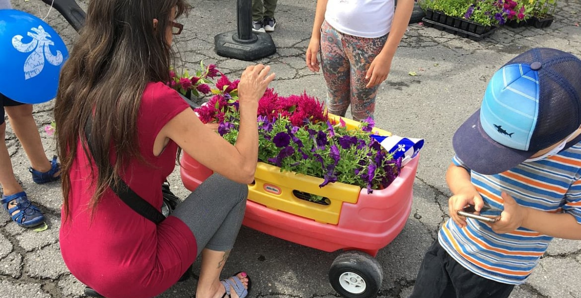 Distribution de plantes, fleurs, compost et paillis à Montréal-Nord (Aréna Fleury)