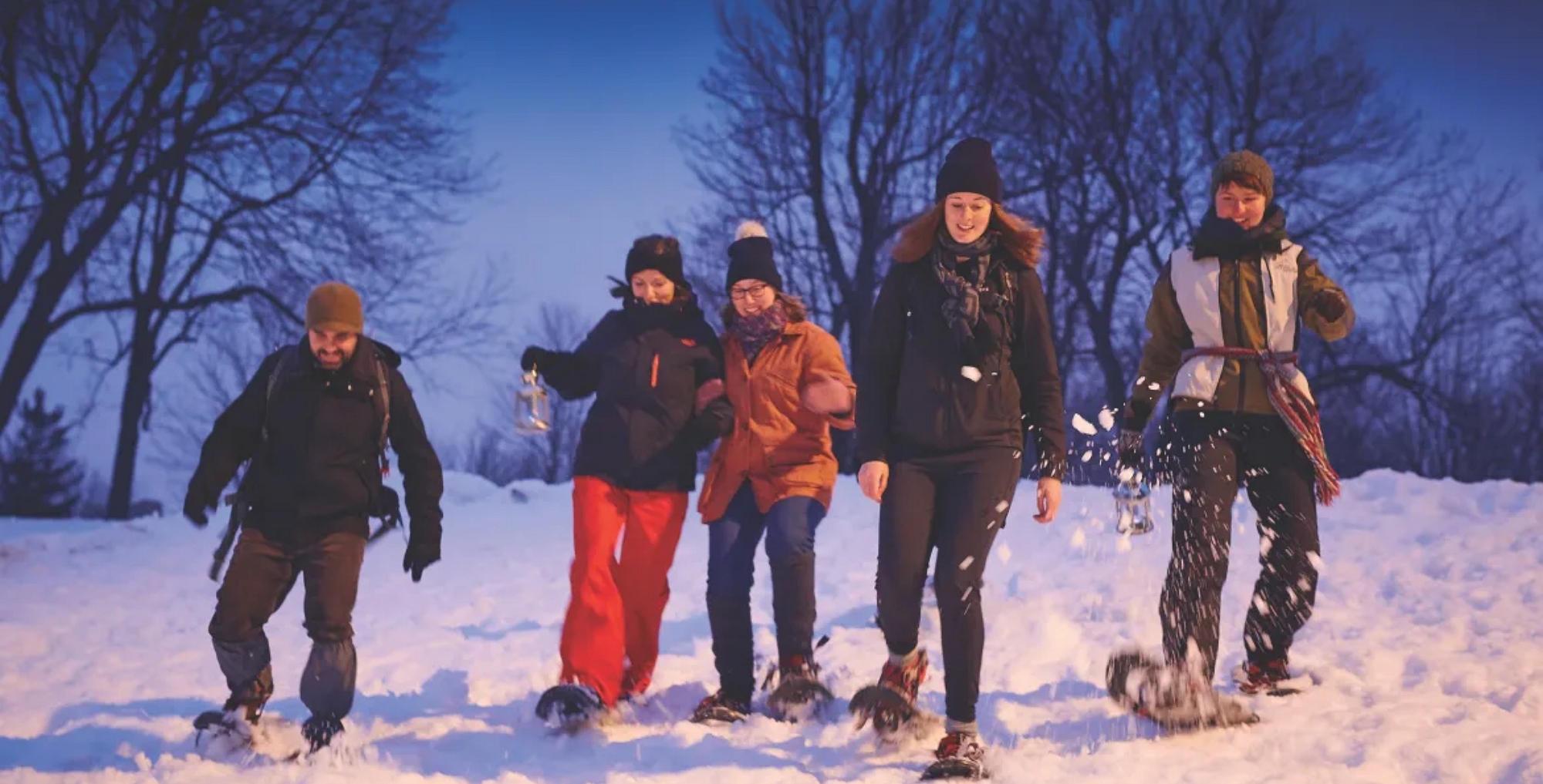 Découvrez les secrets du mont Royal, ses sentiers et ses vues époustouflantes de la ville. De jour ou de soir, accompagné(e)s d’un guide, enfilez les raquettes incluses gracieusement et partez en randonnée d’environ 1 h 30.