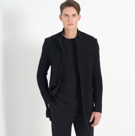 Chez Marie Saint Pierre, les pièces dessinées spécifiquement pour ces messieurs – t-shirts, chemises, vestons, pantalons… – allient lignes épurées et couleurs neutres (noir, blanc, gris et une touche de bleu), deux caractéristiques du prêt-à-porter féminin de la griffe.
