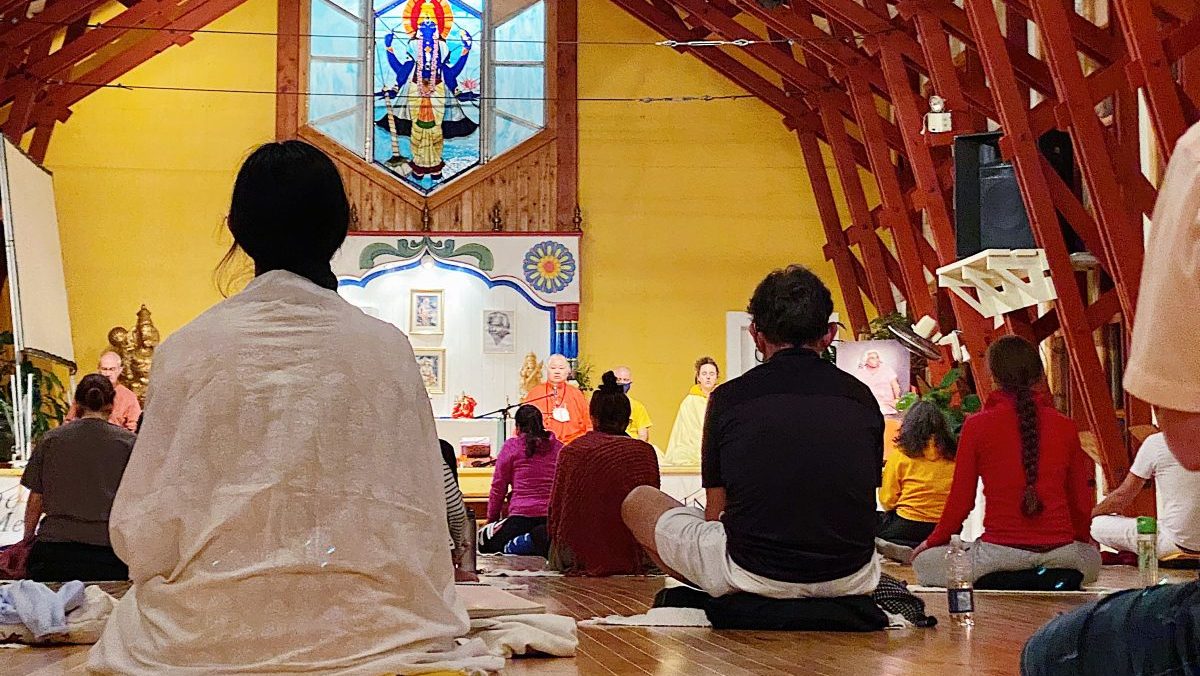 Assis au sol devant la statue de Swami Sivananda, Atmaram – l’un des administrateurs de l’ashram –, est revenu sur les principes du centre où se retrouvent des gens de partout (en temps de non-pandémie) et de tous âges (certains viennent se ressourcer en famille).