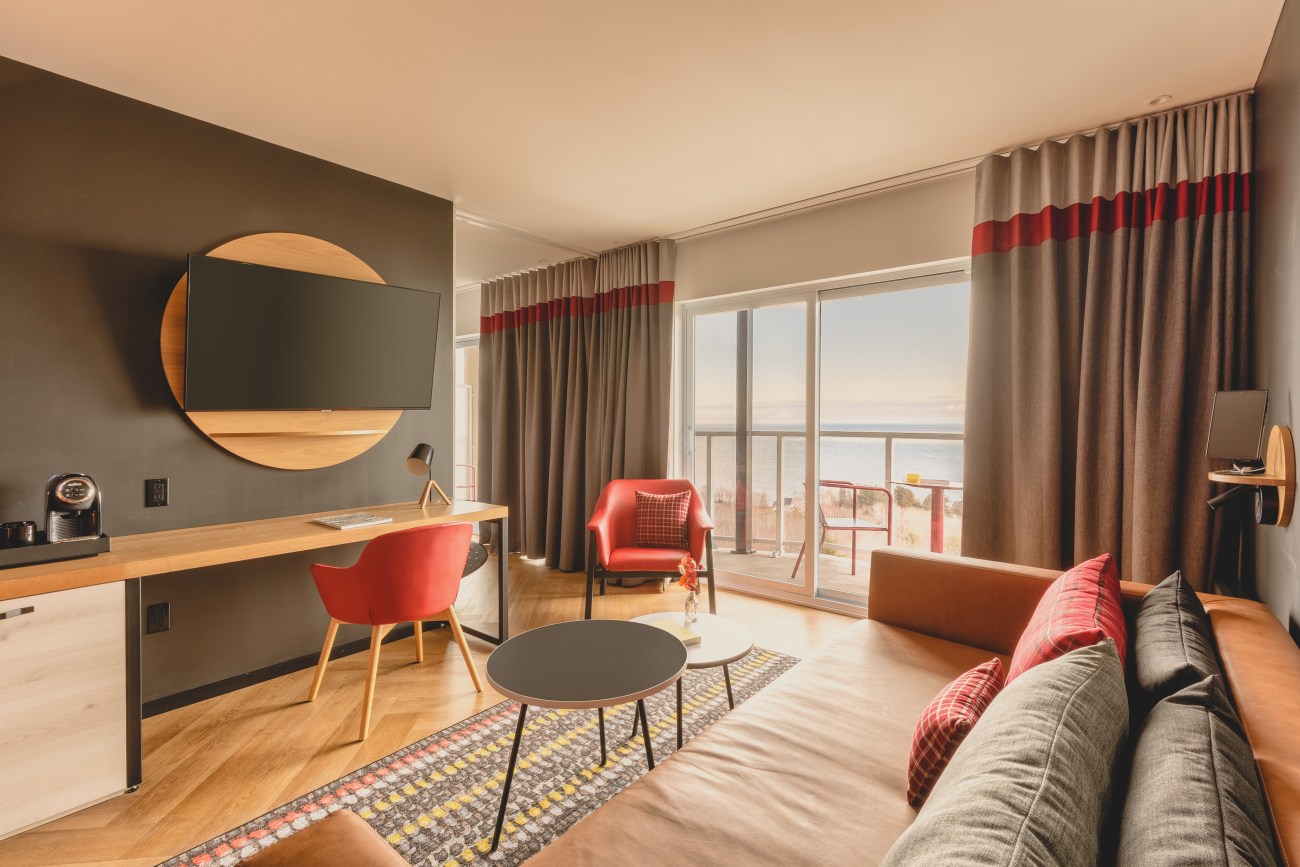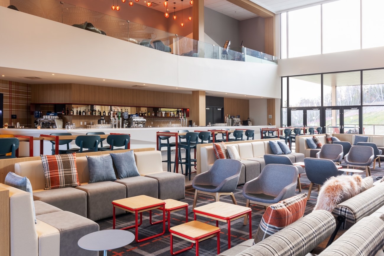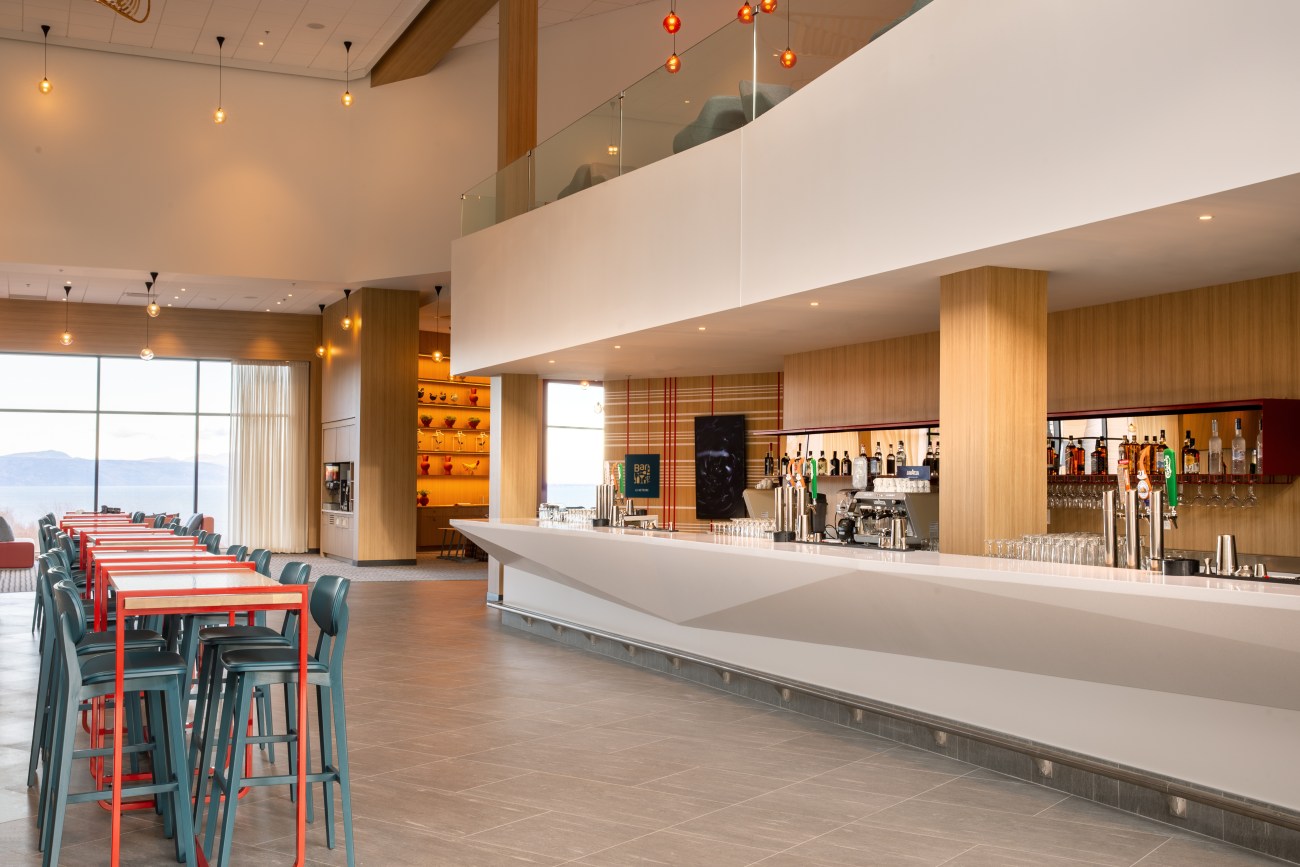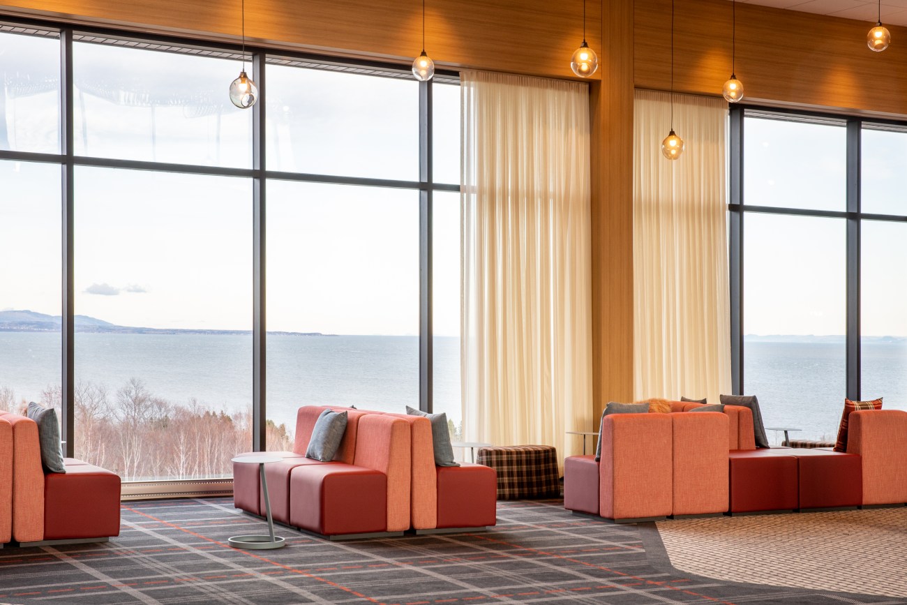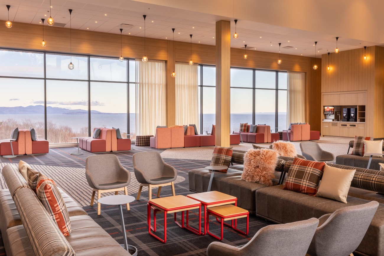 Tout le monde pourra en tout cas profiter du décor chic rustique imaginé par la firme LEMAYMICHAUD Architecture Design. Les touches boisées se mêlent aux coloris vifs et modernes rappelant la nature. Mais le clou du spectacle, c’est la vue sur le fleuve qu’on peut apprécier d’à peu près partout grâce à une généreuse fenestration.