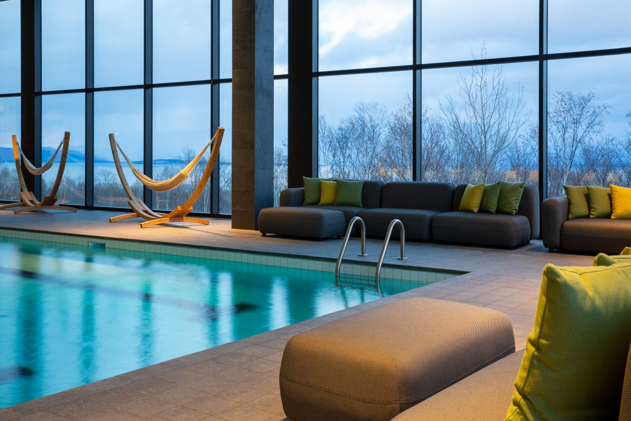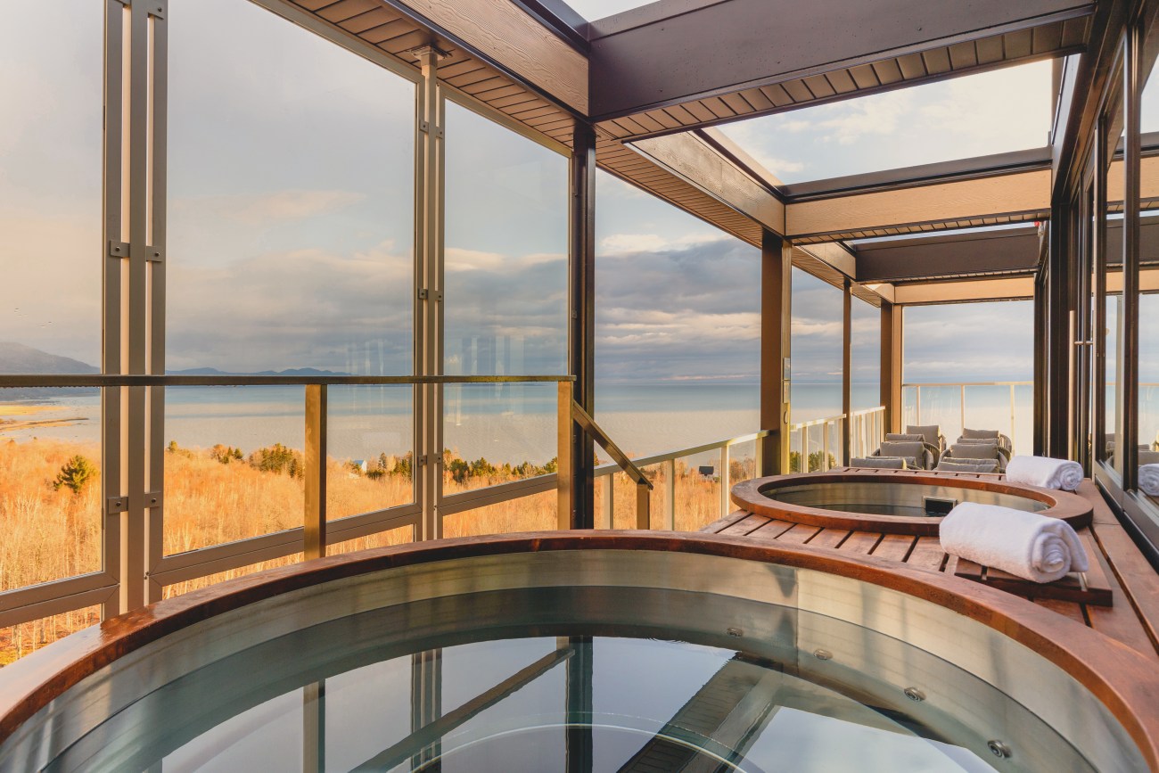 Mais une fois qu’on pose nos bâtons et qu’on se libère de nos bottes, c’est là que la vraie expérience Club Med débute. Vous pouvez aller vous détendre à la sublime piscine intérieure, dans le sauna ou le jacuzzi extérieur en zieutant les skieurs revenir de la montagne ou encore en contemplant le majestueux fleuve qui s’étend sous vos yeux.