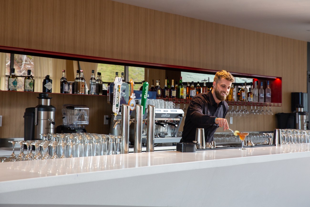 Puis vient le temps de se sustenter. La clientèle a accès à un certain nombre de repas au restaurant à la carte, Le Chalet, où on peut se régaler d’un menu «à la bonne franquette» élaboré par les chefs Robert Piccininni et Mathieu Masson-Duceppe du délicieux Jellyfish Montréal. Plats plus traditionnels (charcuteries bio de Charlevoix, poulet et carottes braisés, tarte au sucre) se mêlent à des inspirations d’outre-mer (tartare de saumon à l’asiatique, saumon sauce à la crème). C’est copieux!