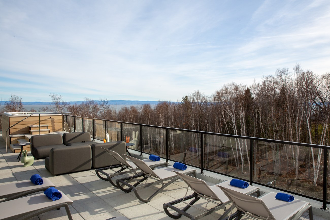 Et ce n’est pas n’importe quel mont qui s’érige dans la cour arrière de l’hôtel. C’est le Massif. Oui, celui qui, au sommet, nous donne l’impression de nous jeter dans le fleuve. L’un des plus beaux du Québec.
