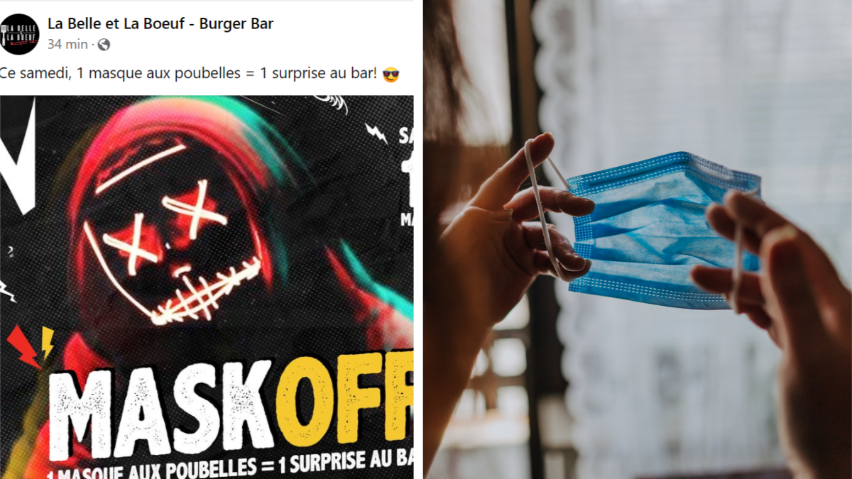 Pour «marquer» la fin du port du masque obligatoire ce samedi au Québec, le resto La Belle et la Bœuf offrira des «surprises» à chaque client qui osera mettre son masque… à la poubelle.