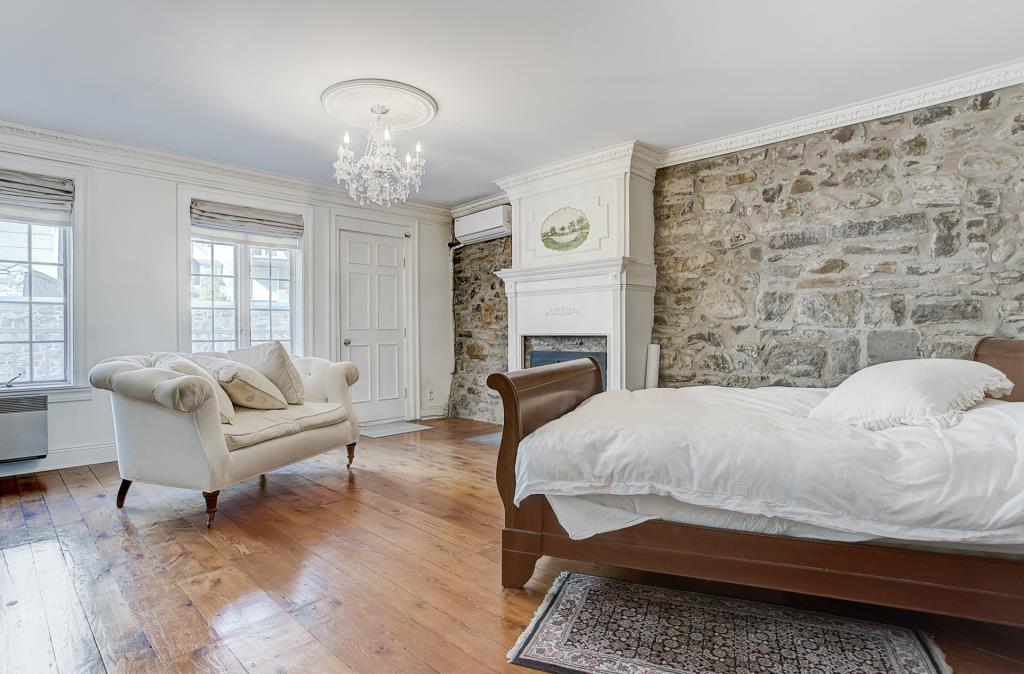 On y trouve aussi un décor qui fait écho au passé des lieux: deux cheminées en pierre, un lit à baldaquin, une baignoire sur pieds, des tapis et des rideaux d’une autre époque meublent la maison. On espère que vous aimez le style, parce que tout ça est inclus dans la vente!