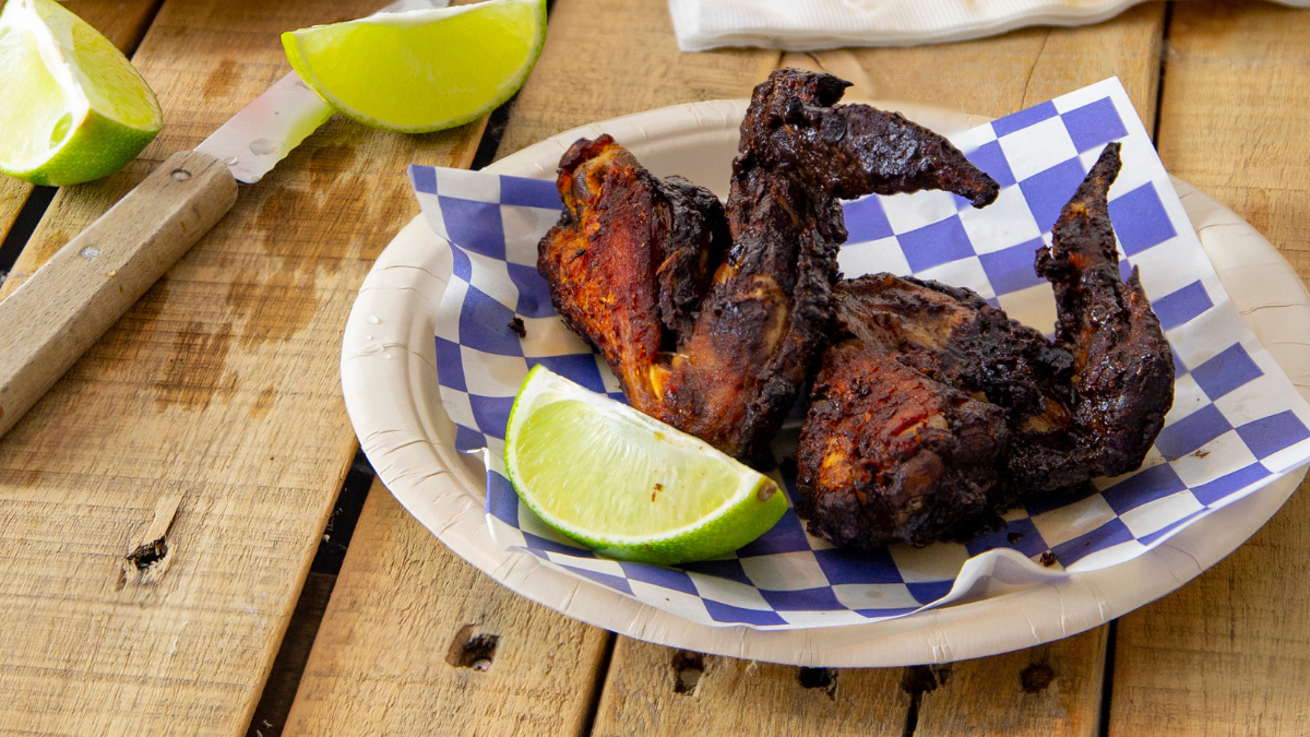 5. Déposer les ailes sur une plaque allant au four et cuire au four environ 30 minutes, jusqu’à ce que les ailes soient caramélisées et collantes. Servir avec des quartiers de lime et une bière froide.