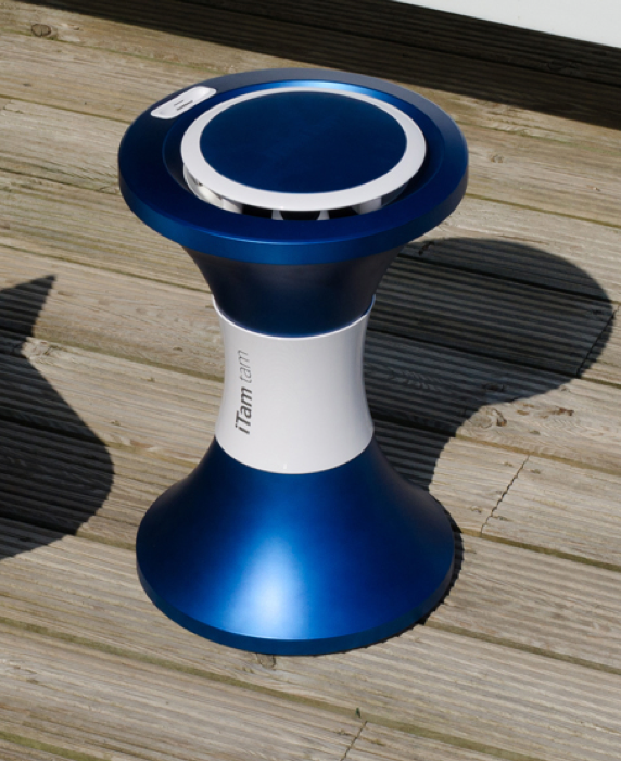 Le designer Eric Berthès a voulu joindre l’utile à l’agréable. Inspiré de l’emblématique tabouret Tamtam créé en 1968 par Henri Massonnet, son iTamtam, offert dans toute une gamme de couleurs, permet d’écouter de la musique tout en servant de station d’accueil pour recharger l’iPhone ou l’iPod. Il est aussi doté de connexions Bluetooth, d’un subwoofer centralisé… et résiste à l’assise jusqu’à 100 kg!