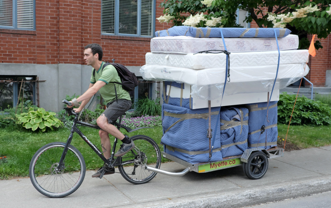 Dans les rues de Montréal où fourmillent déjà de nombreux déménageurs, le vélo est une solution plus écologique et plus abordable que le camion. C’est la promesse de Déménagement Myette, une entreprise pionnière de ce type de déménagement.