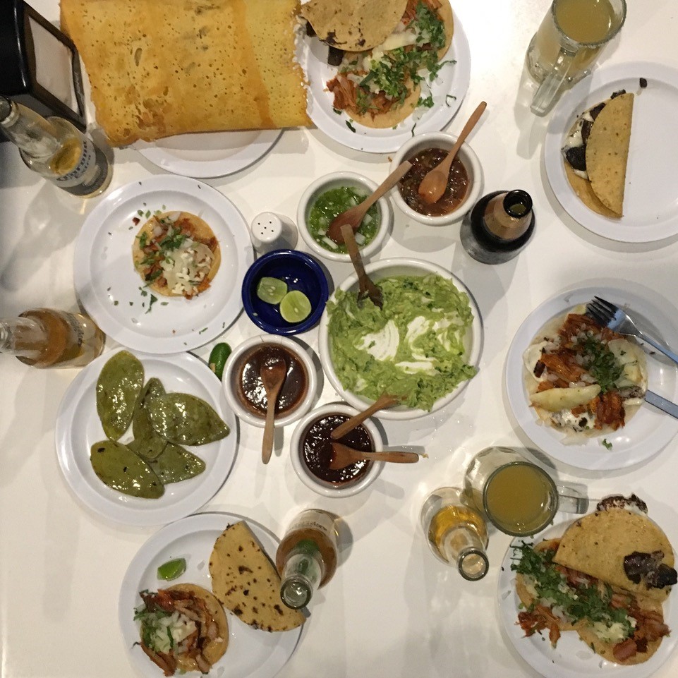À peine a-t-on fini de digérer le desayuno englouti quelques heures auparavant que l’appel du dîner se fait sentir. Pas de précipitation, on a généralement tout l’après-midi. Les tacos, grand classique qui n’exige plus de présentation, se mangent al pastor (spécialité locale au porc et à l’ananas) ou de guisado (garnis de plats mijotés).