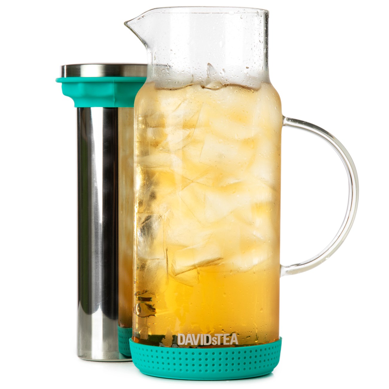 Fait de verre borosilicaté durable avec une base de silicone antiglissement, ce pichet est assez grand pour contenir un litre de thé glacé, tout en étant ergonomique; il s’insère très bien dans la porte du réfrigérateur. Lorsque l’infusion du thé est terminée, il suffit de retirer l’infuseur et de le mettre au froid. Offert en fuchsia ou sarcelle.
