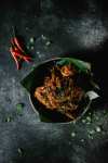 Riche en saveurs, le menu propose un choix varié de plats typiques issus de la cuisine thaïlandaise. Le Kaeng Khiao Waan Luuk Chin Plaa, un curry vert à l’aubergine thaïlandaise et aux boulettes de poisson, présente un bel équilibre entre les saveurs relevées du piment et la douceur crémeuse du lait de coco. L’aubergine thaïlandaise est un légume à découvrir; de la taille d’une balle de golf, le délicieux végétal a une texture fondante, mais conserve sa forme dans le curry et sa saveur est douce et légèrement sucrée.