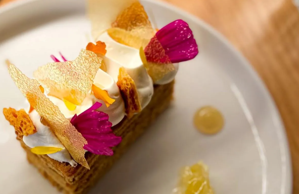 Si votre envie d’un bon gâteau de qualité vient avec une grande soif, vous quitterez le Ratafia avec le cœur léger (et la tête qui tourne un peu!). Ouvert en 2019, le bar à vin se spécialise en desserts d’exception. La bombe Alaska – dont les saveurs se déclinent en fonction des saisons – et le Crunchy, un mélange de feuilles de brick, de miel, de fleur d’oranger et de labneh, témoignent bien du talent de l’équipe en cuisine pour nous combler autant avec des plats riches et décadents qu’avec des assiettes pleines de fraîcheur.