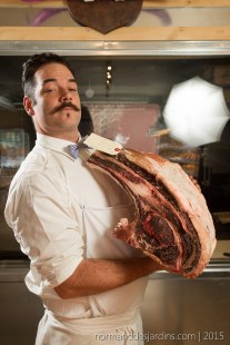 La traçabilité étant une valeur importante pour lui, il connaît la provenance de chaque carcasse qui atterrit sur son bloc de boucher, et il s’approvisionne seulement auprès de producteurs québécois.