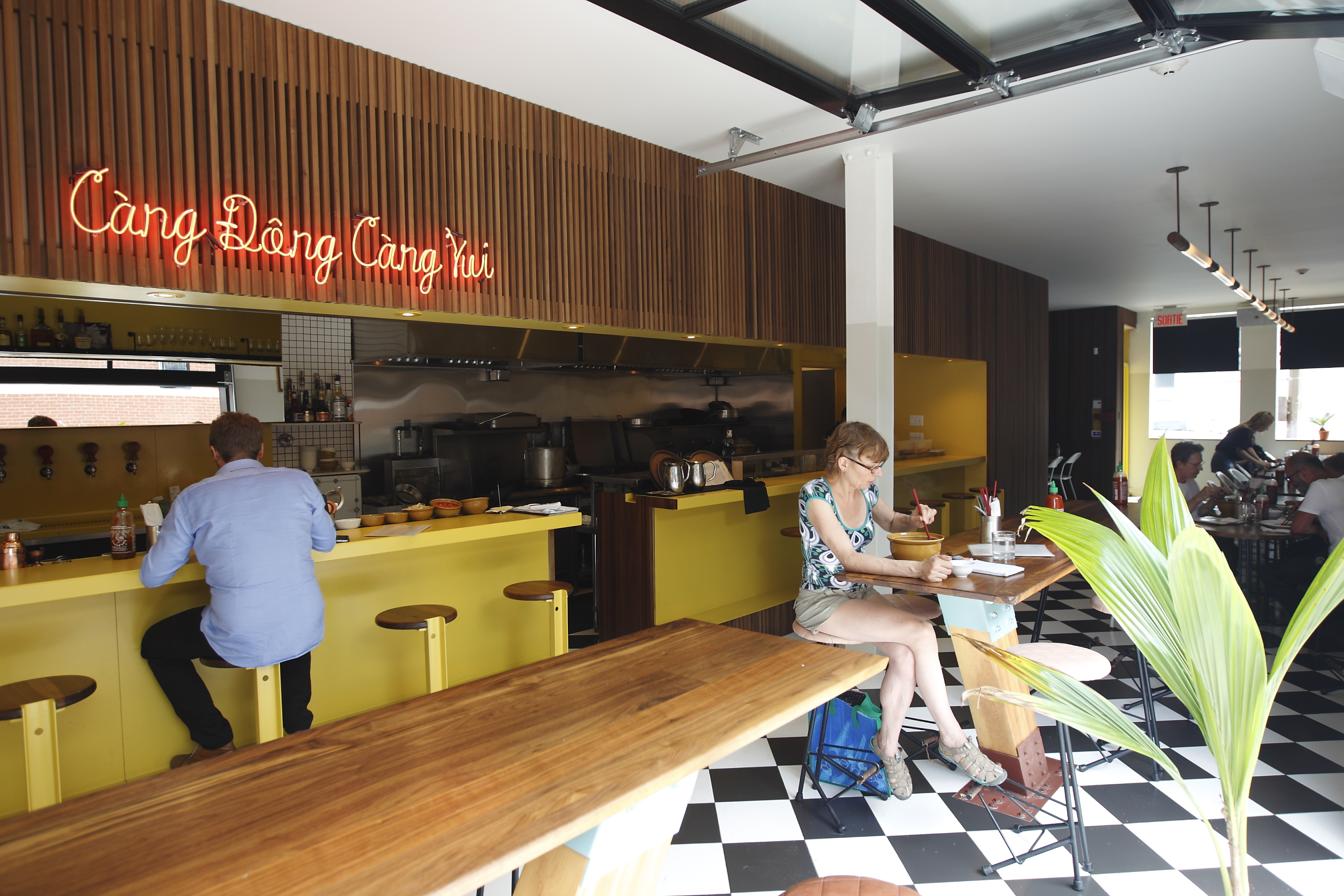 Dès qu’on pousse la porte du Red Tiger, donnant sur le boulevard Maisonneuve Est, dans le Village, on est conquis par le décor conçu par l’Atelier Mainor: un heureux mélange d’éléments de mobilier contemporain en bois et en acier et d’accents et d’accessoires rappelant le Vietnam. On retrouve aussi une grande porte de garage donnant sur la rue Montcalm qui, une fois ouverte, agrandit la place.