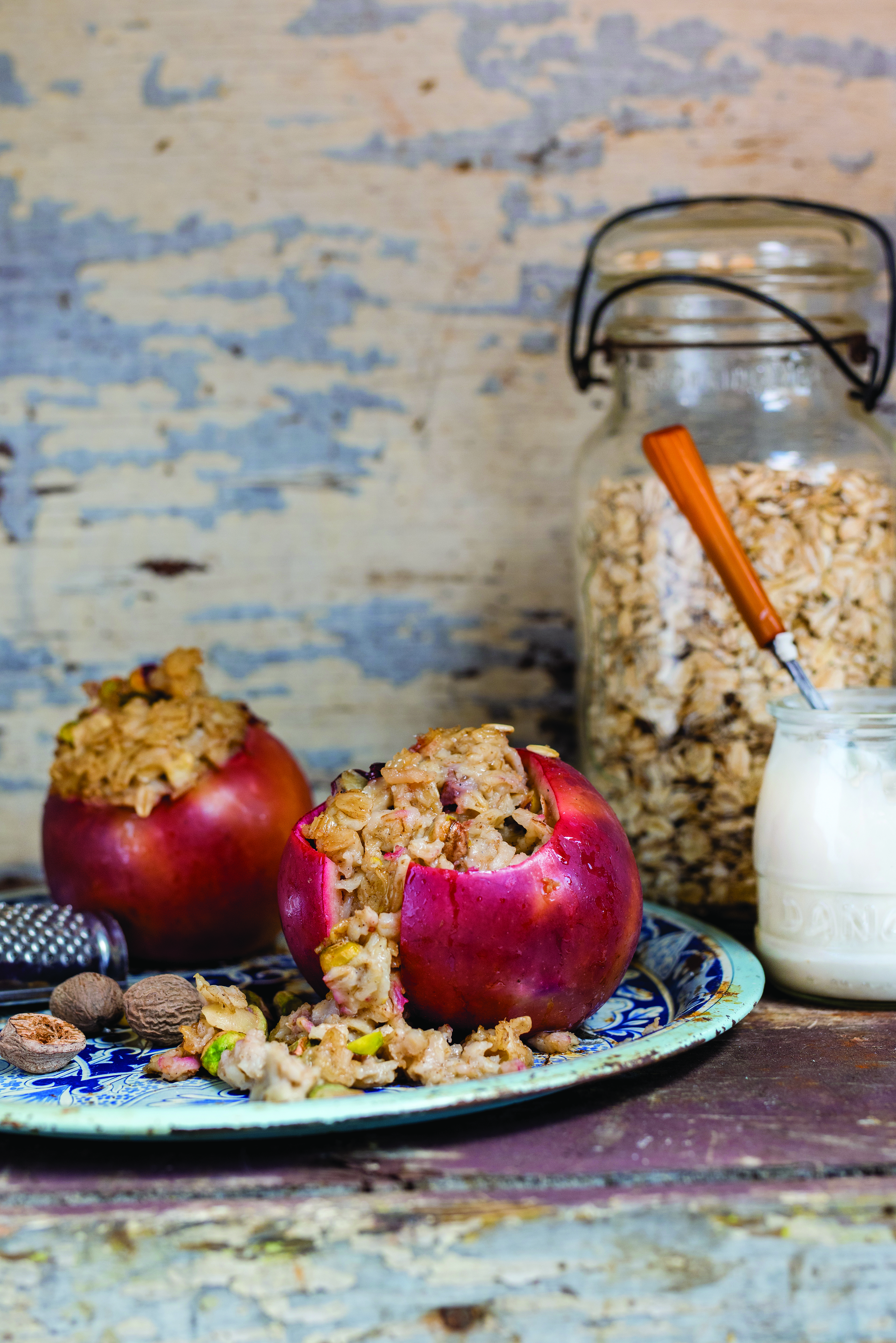 - Garnir chaque pomme du mélange de gruau.