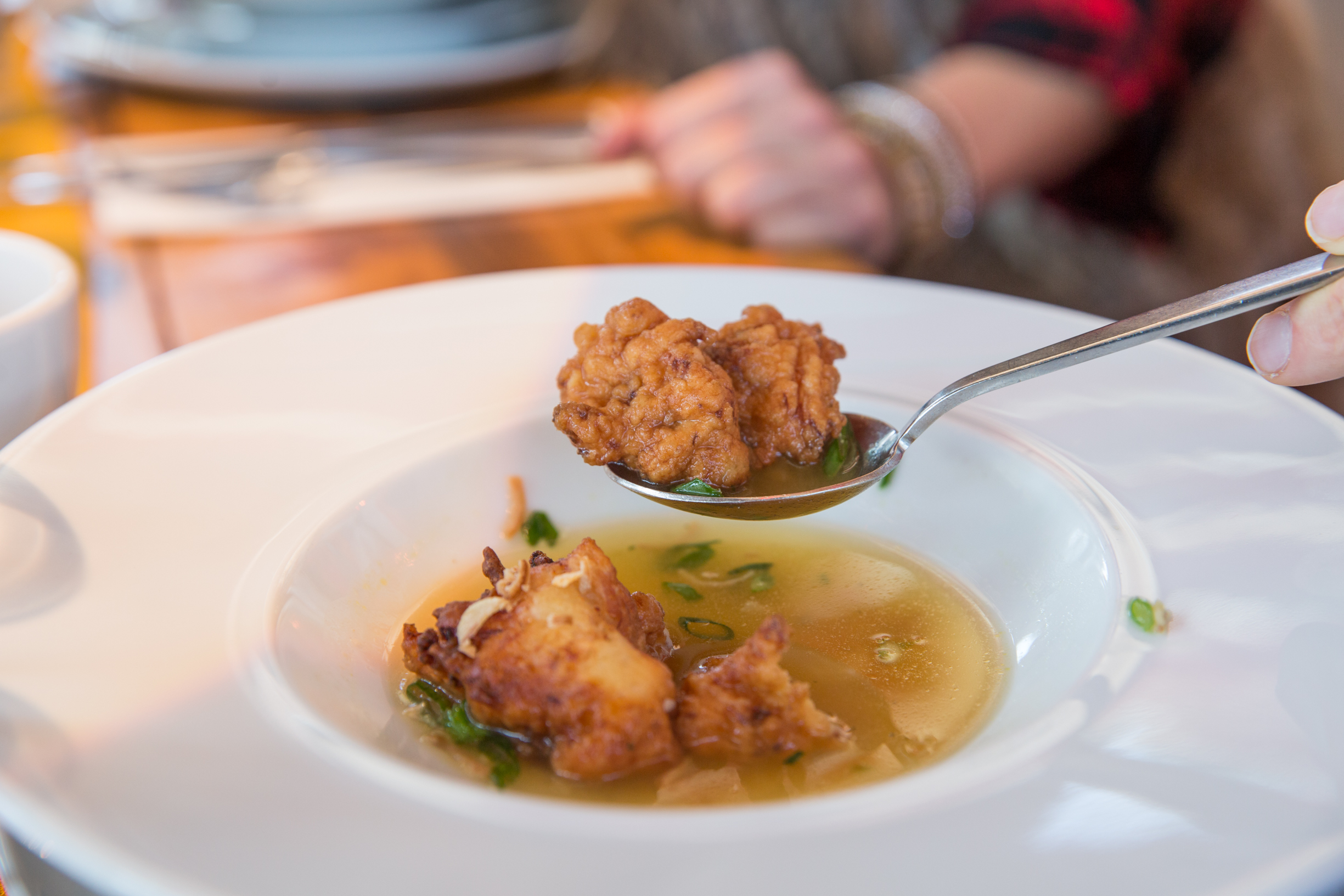 Tout au long du repas, des petites attentions rendent l’expérience fort intéressante. Par exemple, avant le premier service, on a invité les enfants à aller chercher un pot de popcorn à l’érable ou encore, lors du dernier service, une gigantesque plateforme descend du plafond et on peut aller y chercher un gigantesque biscuit chinois, avec un petit marteau de bois, que l’on va casser à la table.